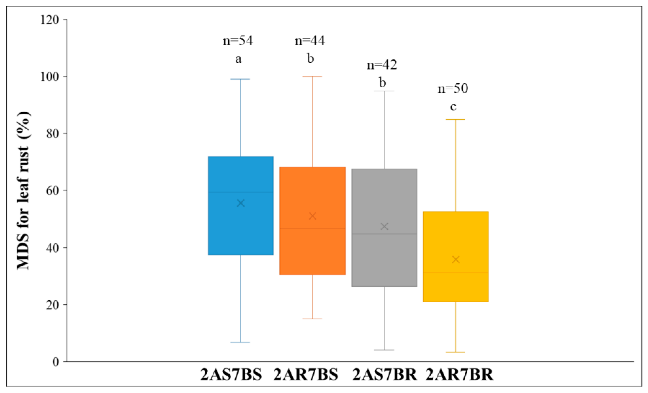 2.3. Additive Effect of QTL for Leaf Rust Resistance