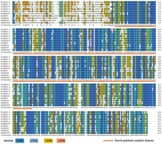 2.2. Amino Acids Analysis and Phylogenetic Tree Construction of the FtGBSS Proteins