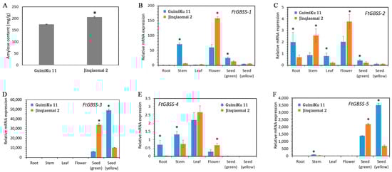 2.3. Expression Analysis of Five FtGBSS Genes in Tartary Buckwheat