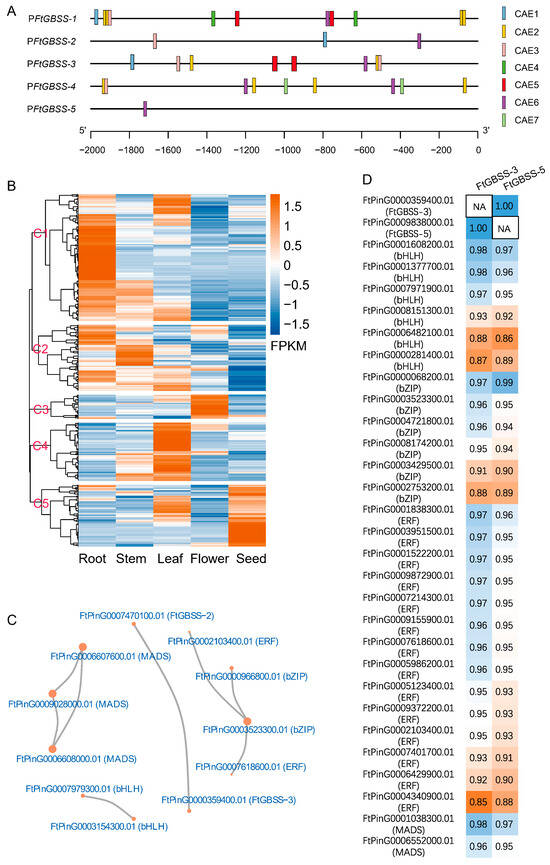 2.4. Cis Acting Elements (CAEs) Analyses on the Promoters of FtGBSSs and Identification of the Potential Binding Transcription Factors (TFs)