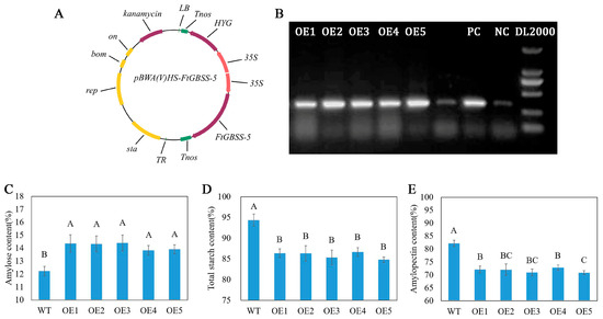 4.5. Heterologous Transformation of FtGBSS-5 into Rice and Starch Content Determination