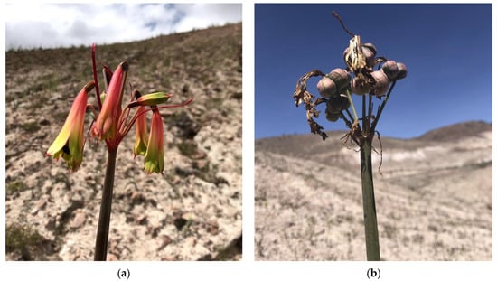- Salazar, C.; Landeros, F.; Bustos, E.; Bravo, P.; Pérez, C.; Becerra, J.; Ríos, D.; Uribe, M. Propagation and Bulblet Enhancement of Rhodophiala Pratensis from Seeds Germinated in Vitro. Cienc. Investig. Agrar. 2019, 46, 12–22. [Google Scholar] [CrossRef]
