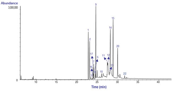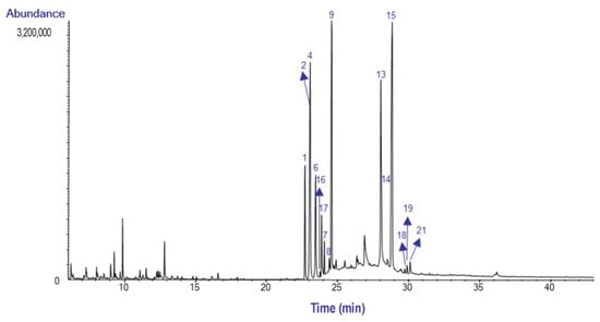 3.3. Gas Chromatography Coupled to Mass Spectrometry (GC-MS) and Ultra Performance Liquid Chromatography (UPLC) Analysis