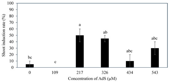 Figure 10). The study demonstrated that supplementation of AdS to the medium significantly improved the percentage of shoot-like structures being formed (