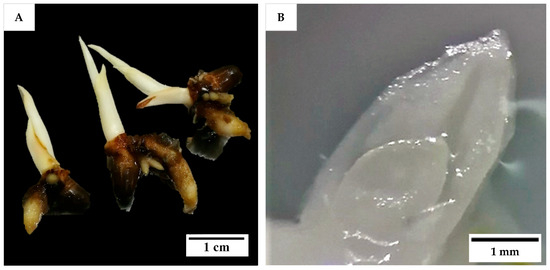 39] for two to four weeks under dark conditions. The embryos were then used for histological studies either directly (not surface-sterilized) or after 2- or 4-weeks of germination. As for the shoot-like structures developed from CAIRNS inflorescence explants, they were obtained after a further four weeks of culture at the end of Experiment 2, as described later (