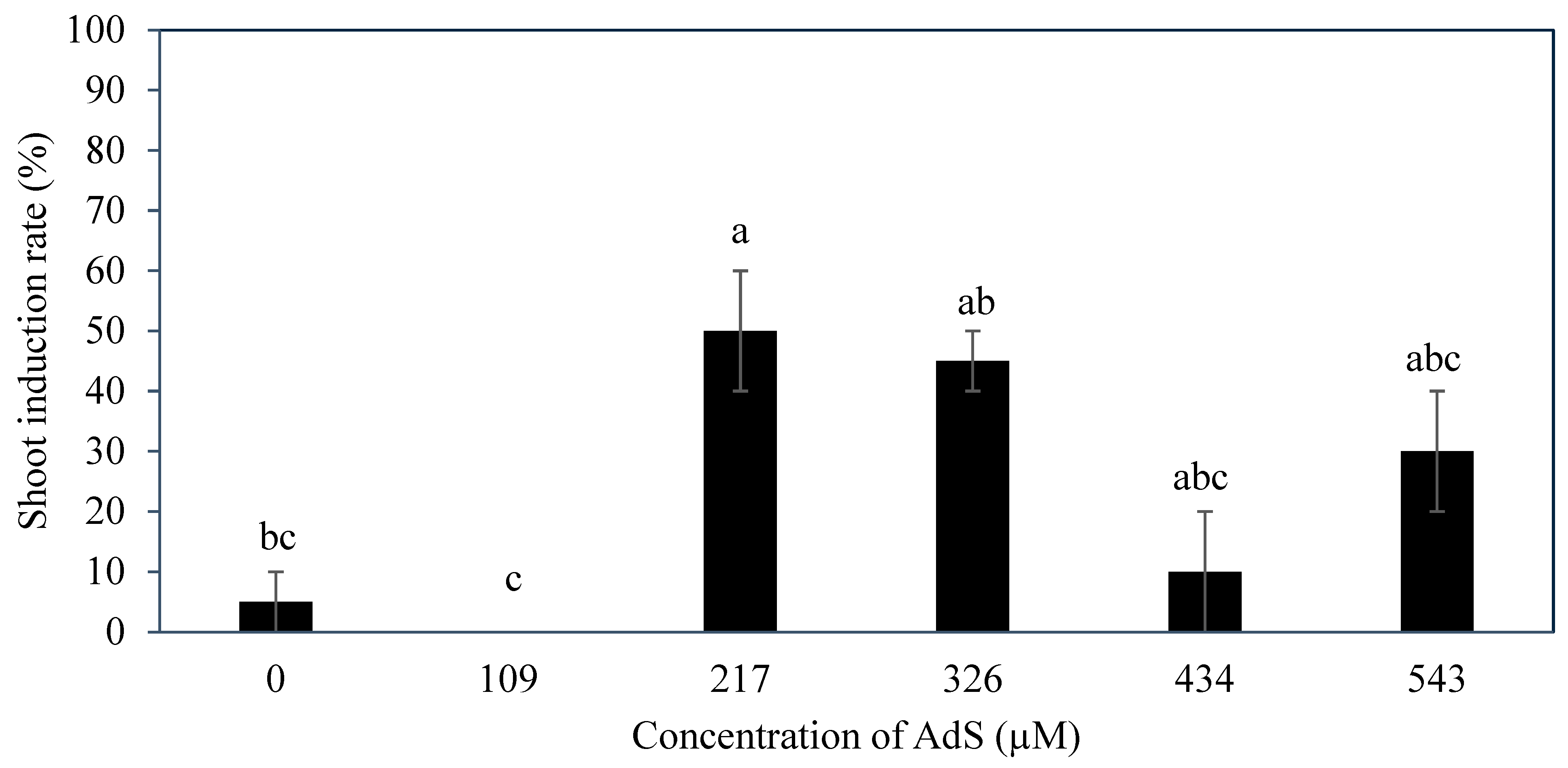 21]. The synergistic effect of AdS with other cytokinins has been shown to promote multiple shoot formation and proliferation in the physic nut (
