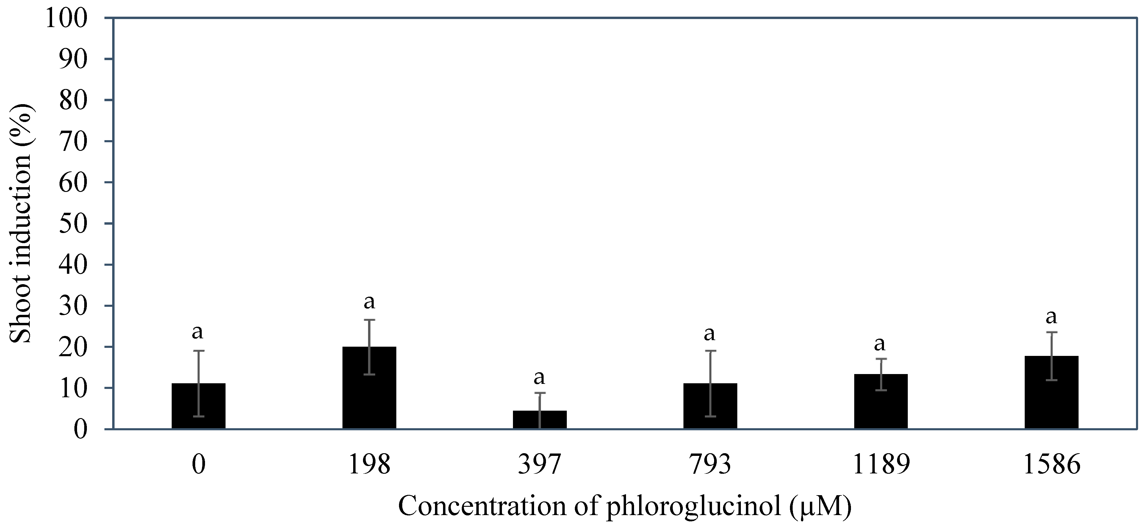 23], and it is often used in medium as growth-promoting supplement that improve shoot production, SE, and root formation. Phloroglucinol can also control hyperhydricity by acting as a precursor in the lignin biosynthesis pathway and improve multiplication rate of hard-to-propagate species like woody species [