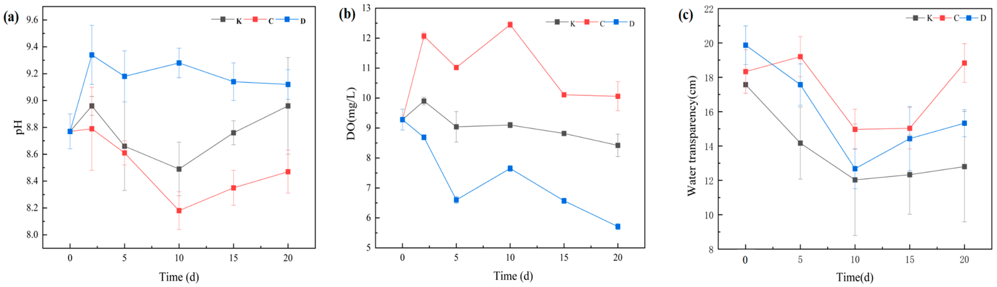 3.1. Effects of Different Daphnia magna Densities on Water Quality and Algal Suppression