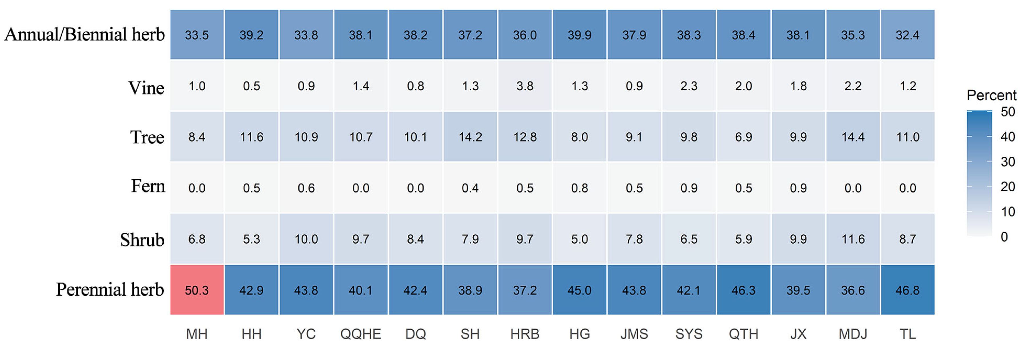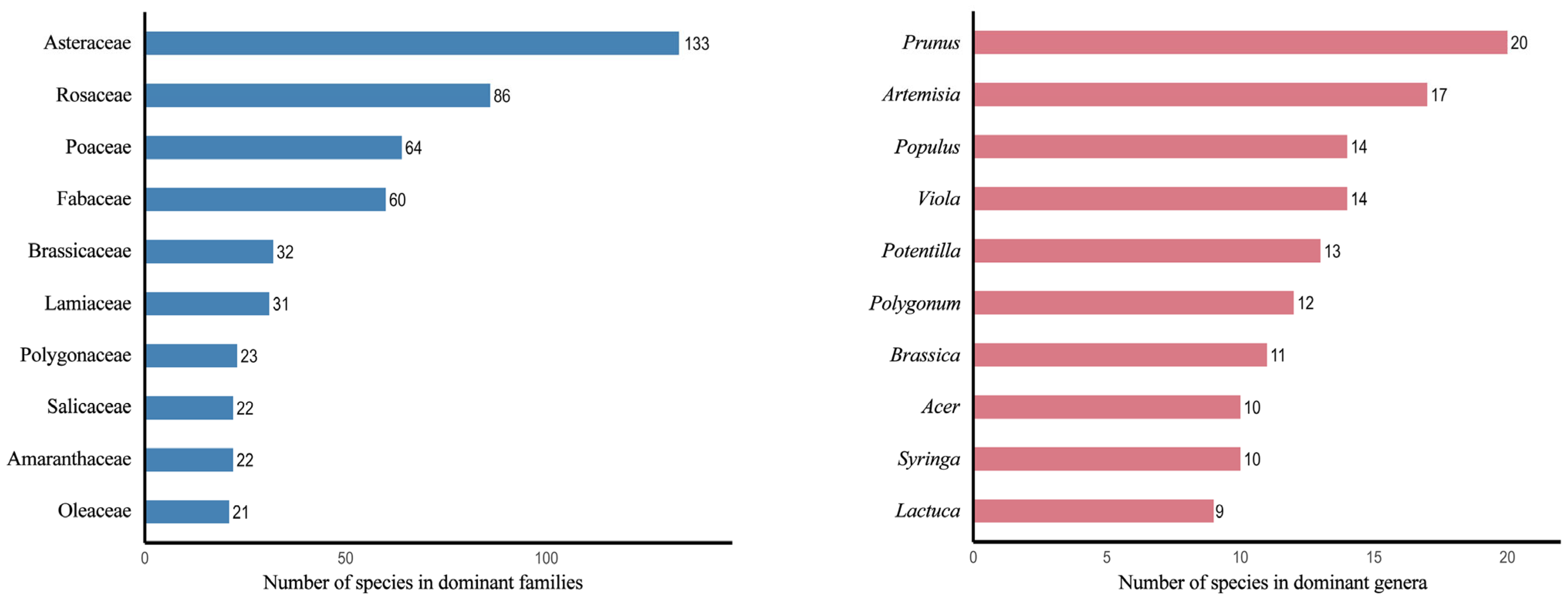 3.1. Characteristics of Species Composition and Potential Adaptation-Related Interpretations of Spontaneous Plants in Heilongjiang Province