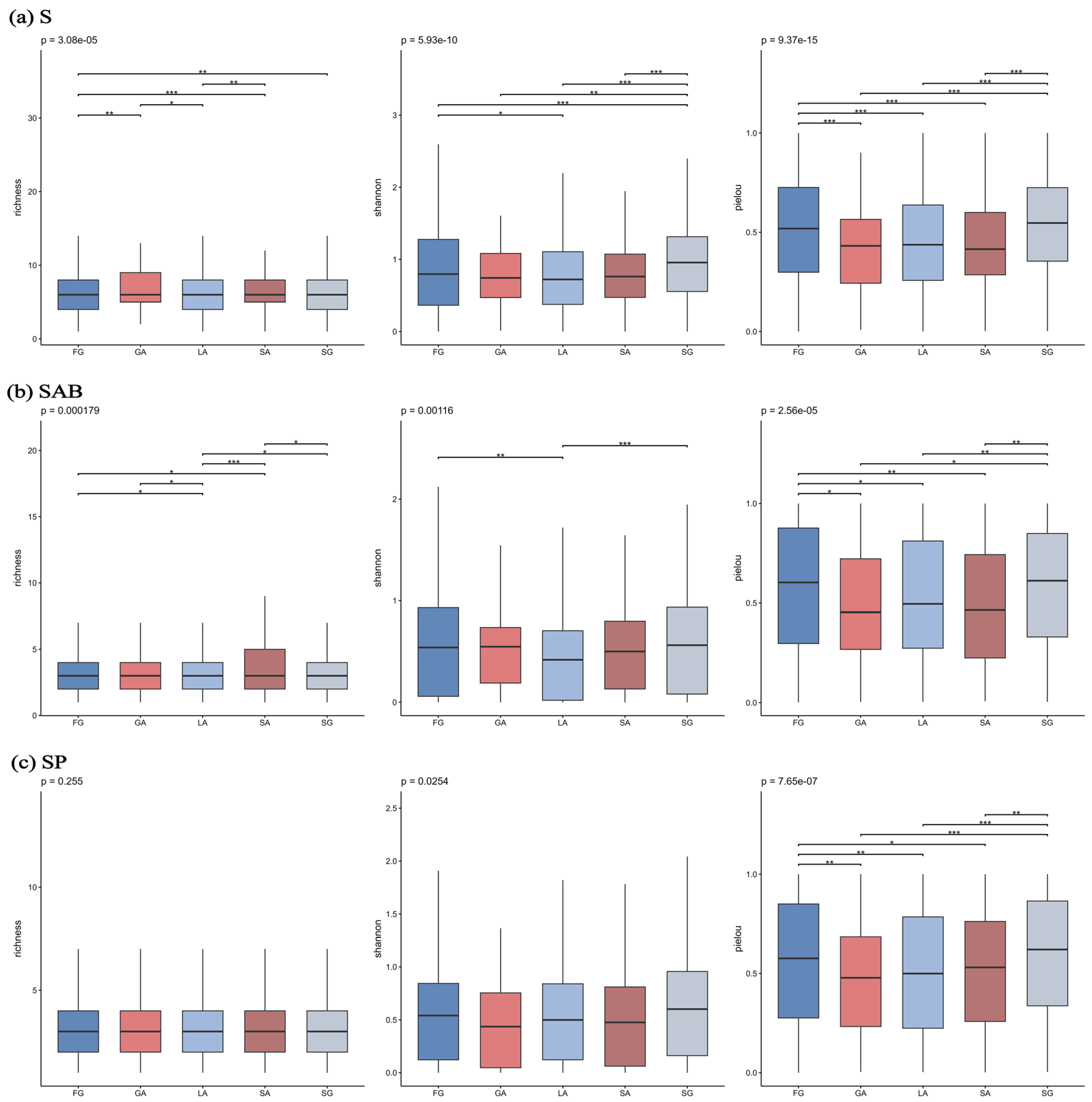 Influence of Habitat Types on the Distribution of α-Diversity Index