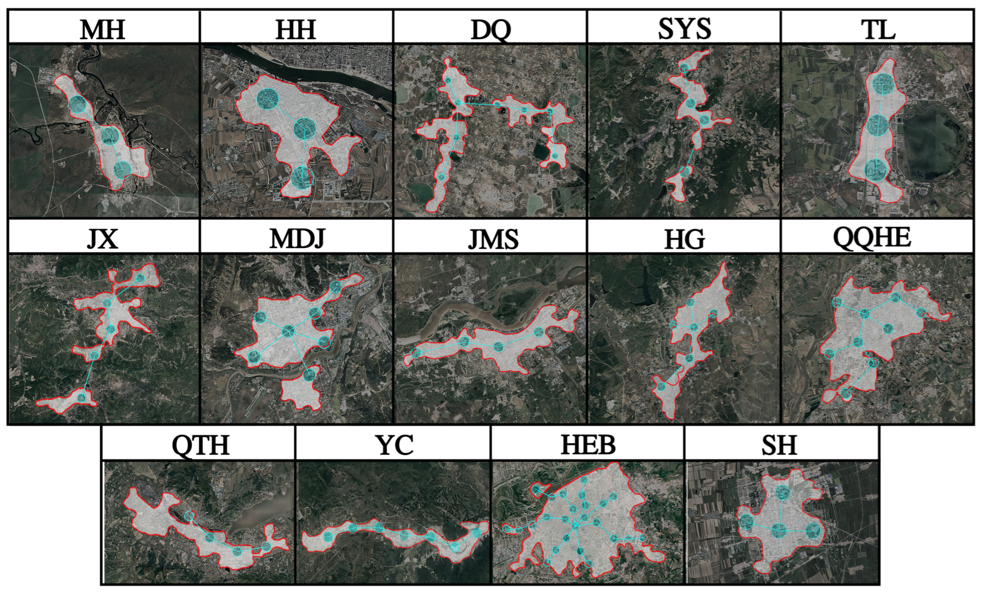 - Zhu, H.; Zhao, C.; Li, F.; Shen, P.; Liu, L.; Hu, Y. Distribution Patterns of Urban Spontaneous Vegetation Diversity and Their Response to Habitat Heterogeneity: A Case Study of Five Cities in Heilongjiang Province, China. Plants 2024, 13, 2982. [Google Scholar] [CrossRef] [PubMed]