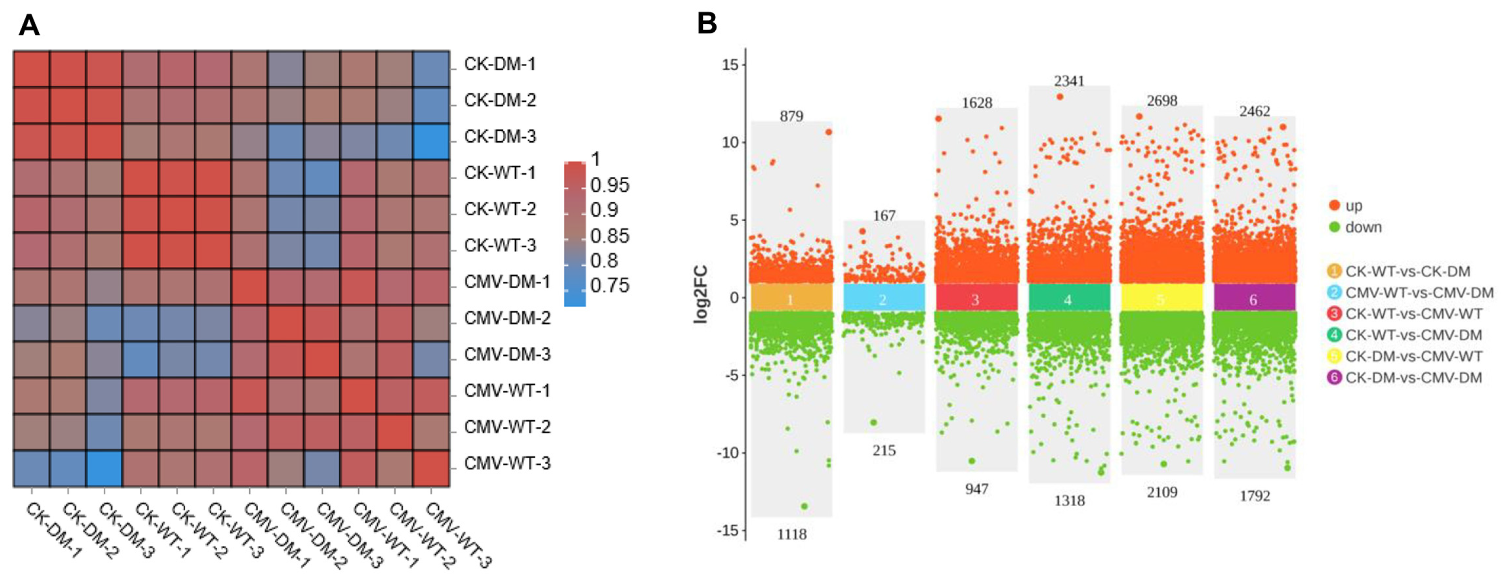 2.3. Identification of DEGs in Arabidopsis Responding to CMV