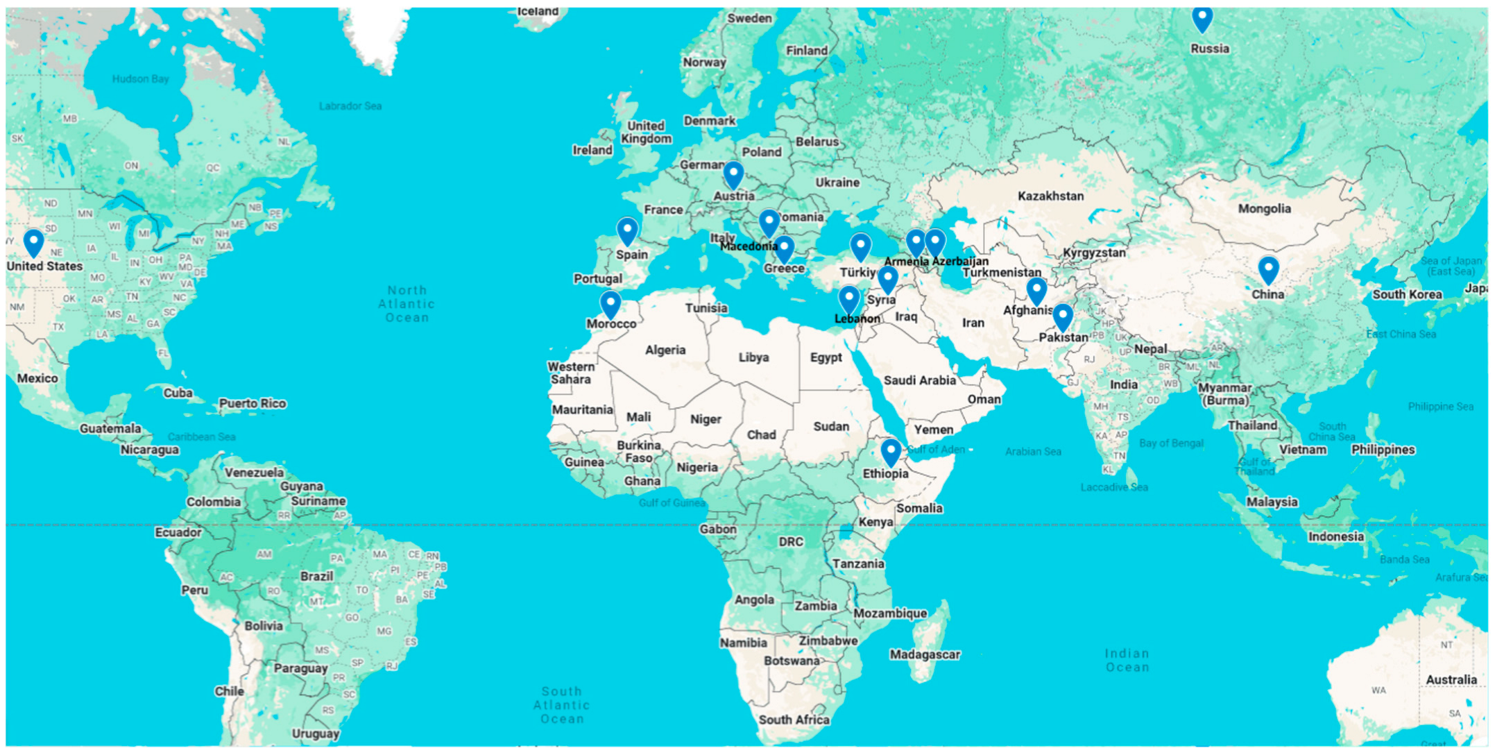 - Trethowan, R.M.; Nicol, J.M.; Singh, A.; Singh, R.P.; Tadesse, W.; Govidan, V.; Crespo, J.L.H.; Cullis, B.; Mazur, L.; Dieters, M.; et al. The CIMMYT Australia ICARDA Germplasm Evaluation concept: A model for international cooperation and impact. Front. Plant Sci. 2024, 15, 1435837. [Google Scholar] [CrossRef] [PubMed]