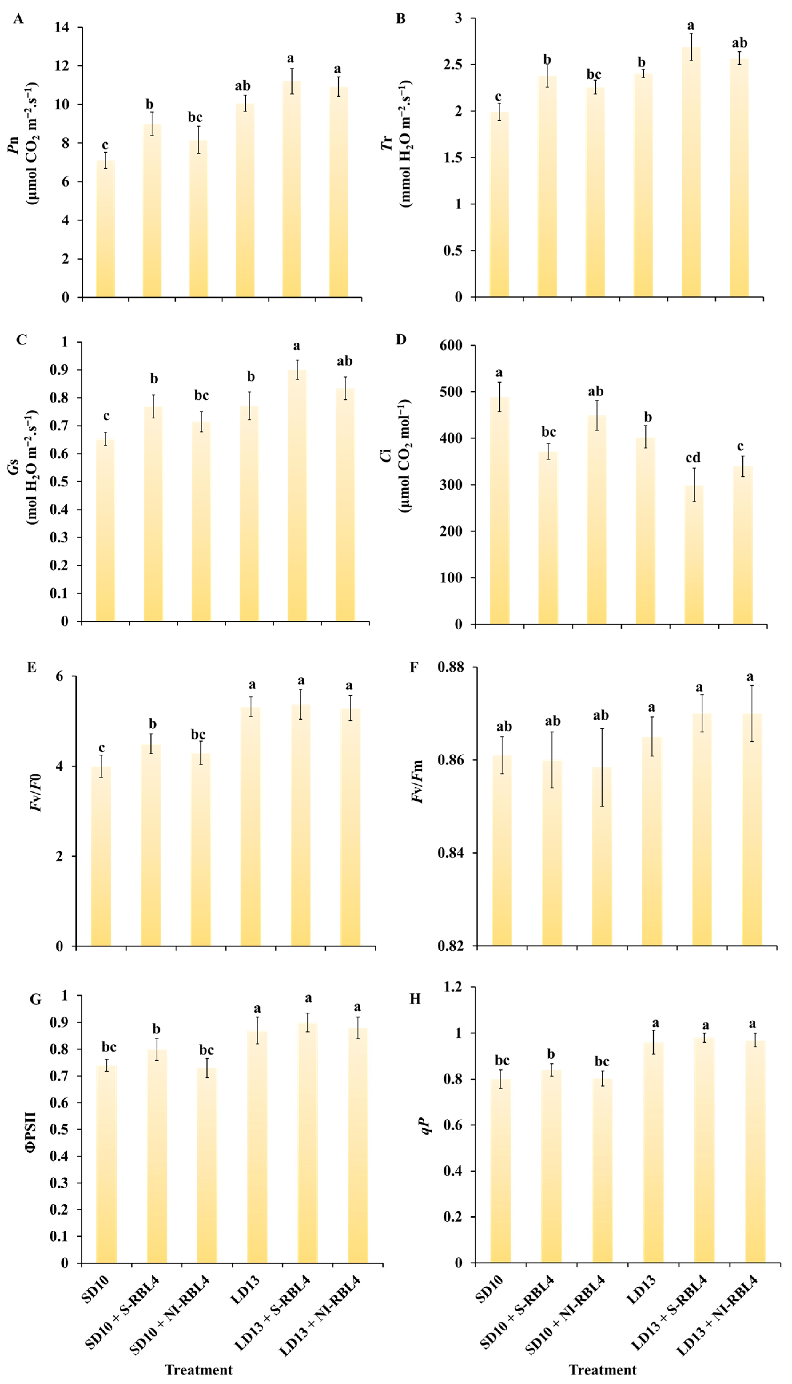4.5. Measurement of Photosynthetic and Chlorophyll Fluorescence Parameters