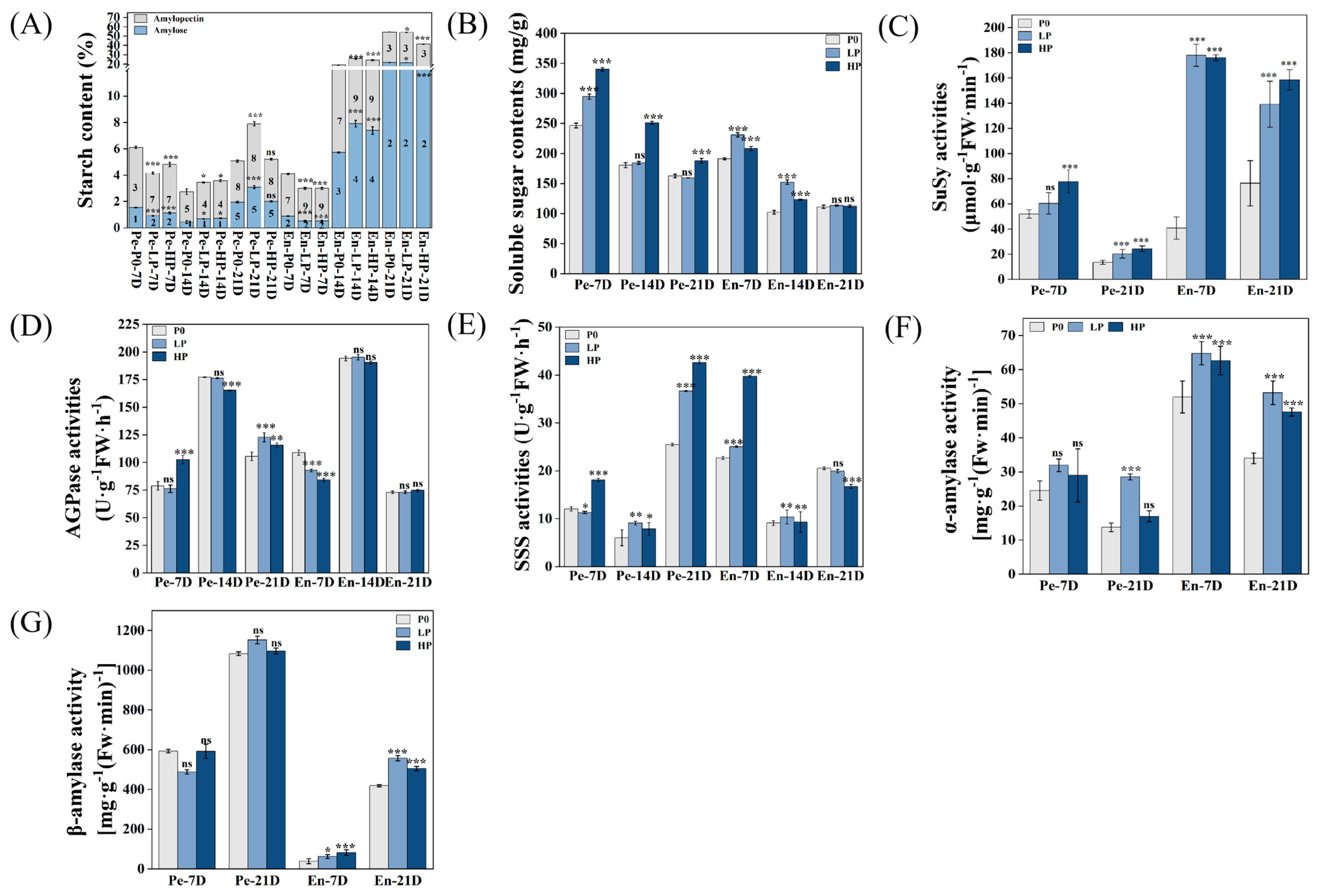 2.7. Metabolic Adaptations in Pericarp and Endosperm Under Phosphorus Application: Insights from Starch Granule Proteomics