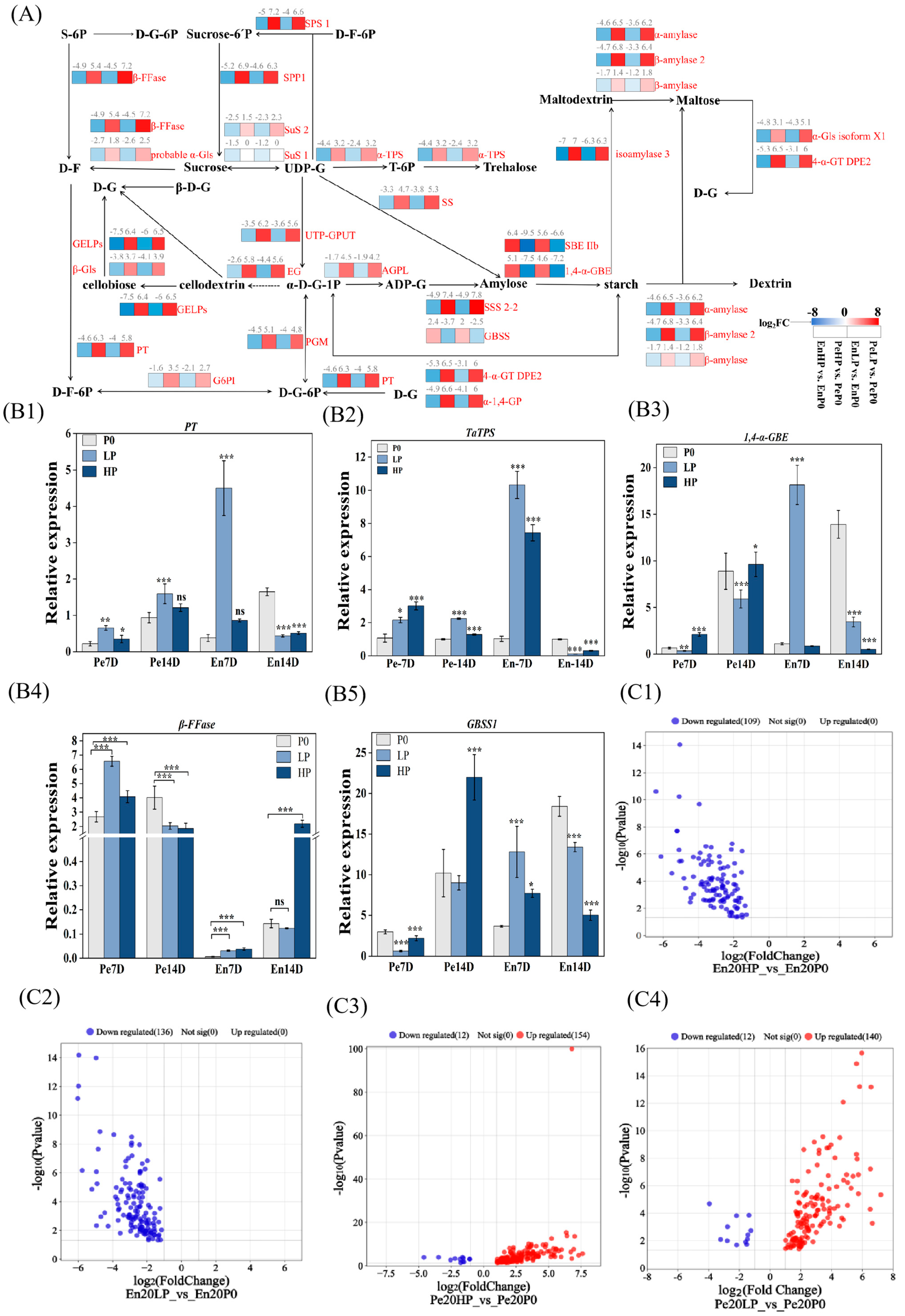 2.5. Phosphorus Supply Levels Affected the Metabolic Characteristics of Starch Granule-Associated Proteins in Wheat Pericarp and Endosperm