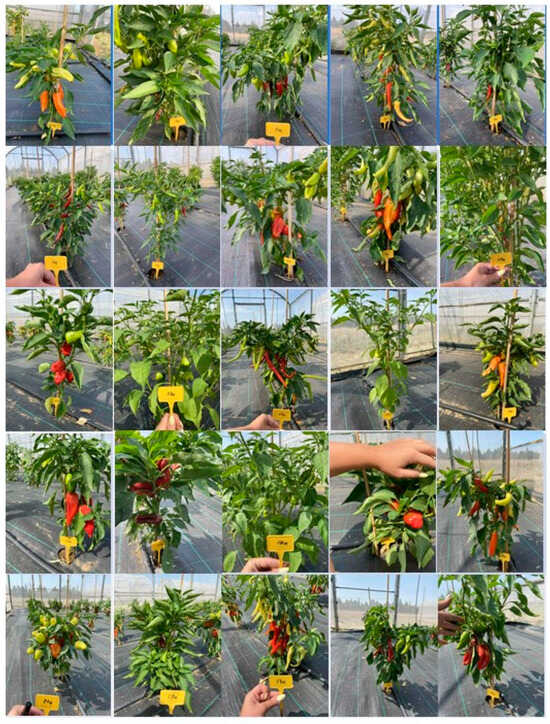 - Jin, L.; Jin, N.; Wang, S.; Meng, X.; Xie, Y.; Li, Z.; Zhang, G.; Yin, X.; Lyu, J.; Zhong, Y.; et al. Comparing the Morphological Characteristics and Nutritional Composition of 23 Pepper (Capsicum annuum L.) Varieties. Eur. Food Res. Technol. 2023, 249, 963–974. [Google Scholar] [CrossRef]