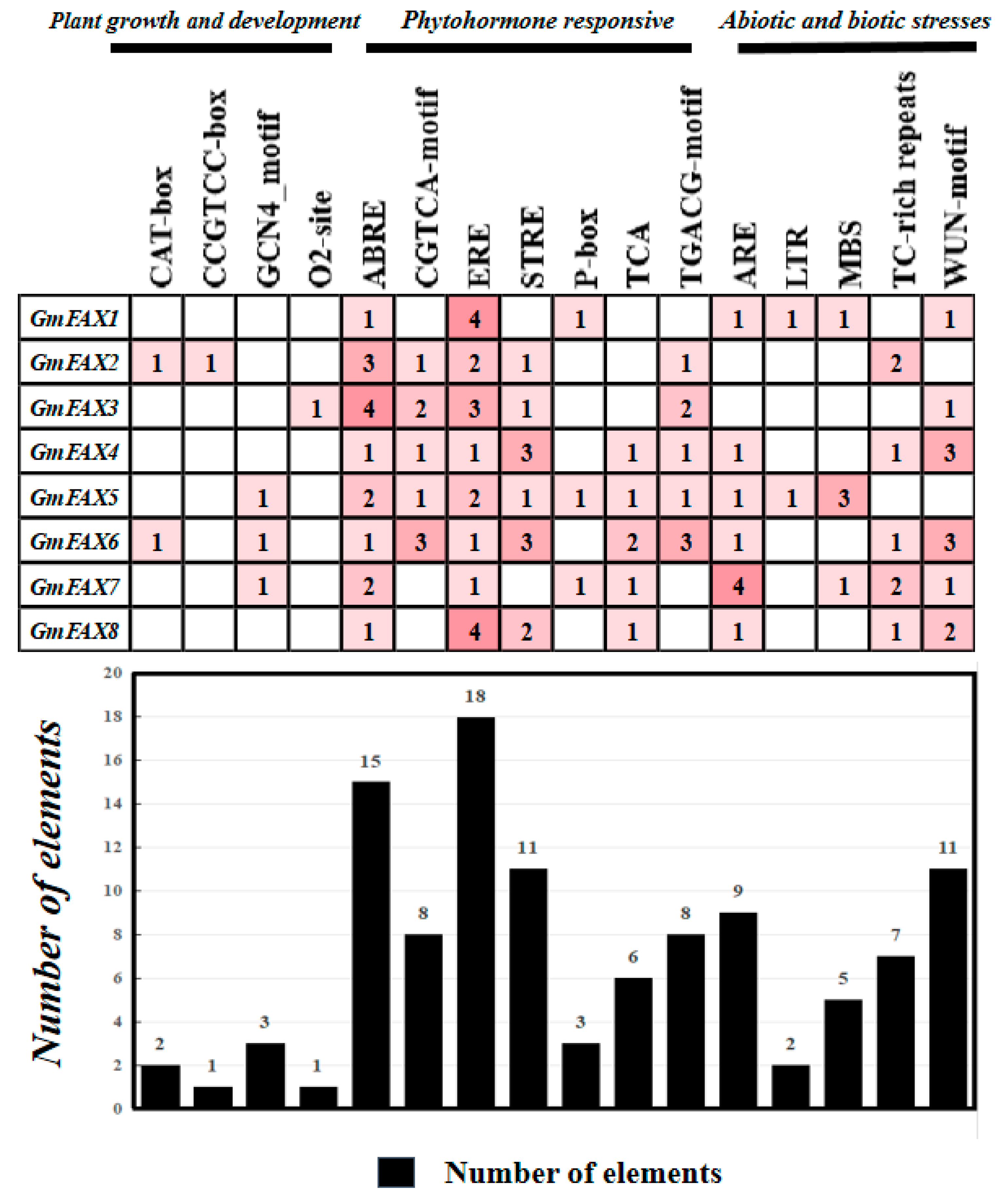 2.3. Analysis of Cis-Acting Elements of GmFAX Promoter