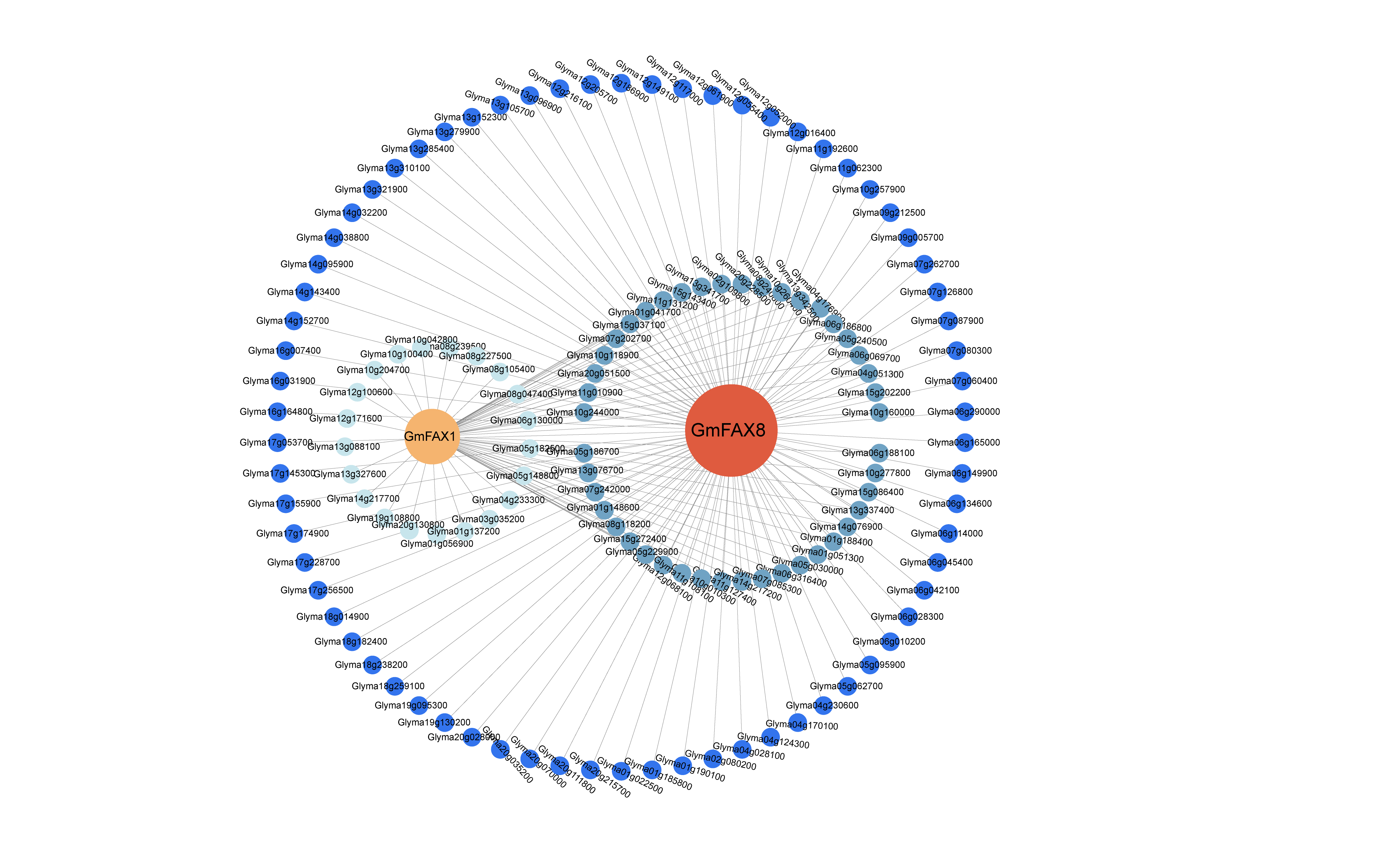 4.9. Co-Expression Network Analysis of GmFAX Genes and Transcription Factors