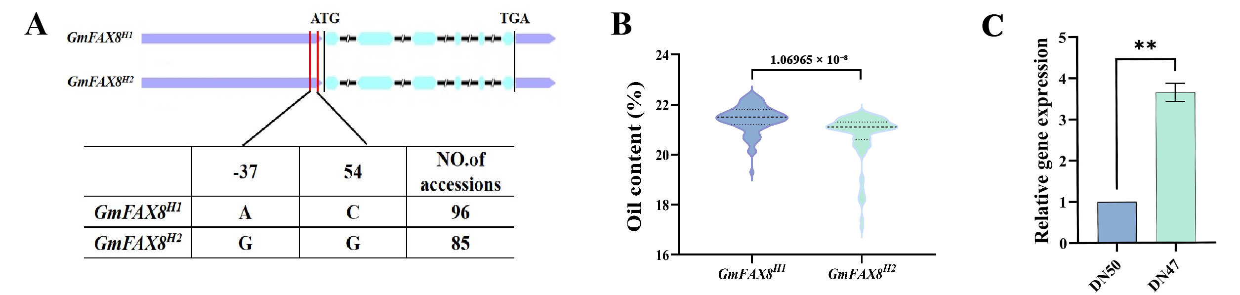 2.8. Haplotype Analysis of the GmFAX8 Gene