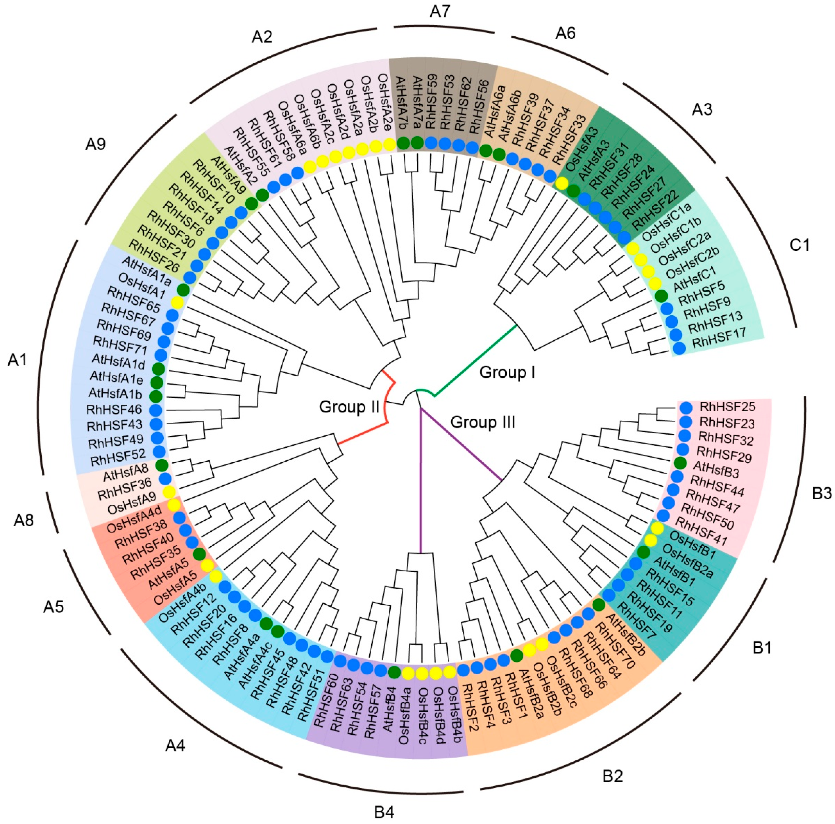 - Kang, Y.; Sun, P.; Yang, Y.; Li, M.; Wang, H.; Sun, X.; Jin, W. Genome-wide analysis of the hsf gene family in rosa chinensis and RcHsf17 function in thermotolerance. Int. J. Mol. Sci. 2024, 26, 287. [Google Scholar] [CrossRef] [PubMed]