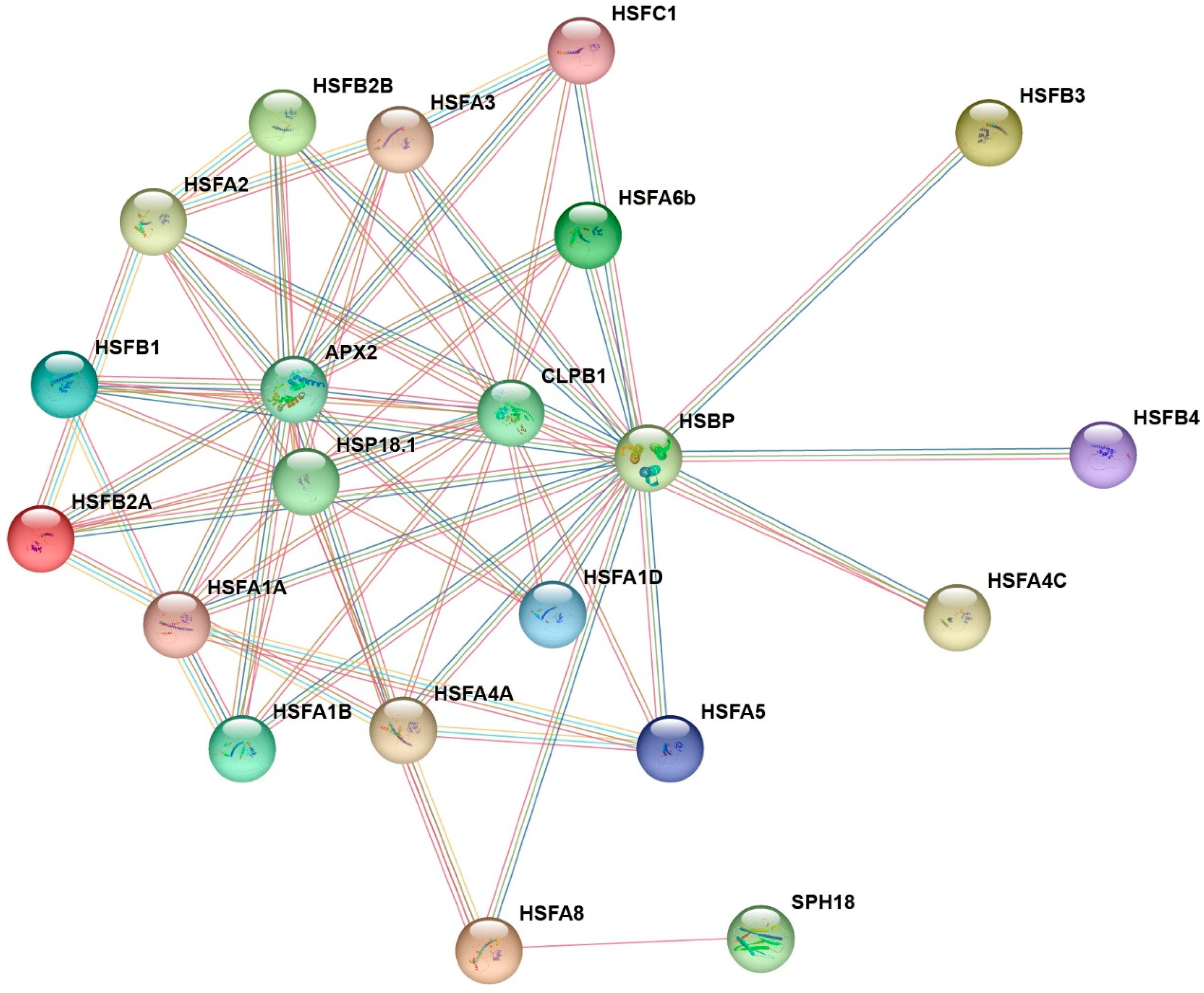 2.9. Protein–Protein Interaction Network Analysis of RhHSFs