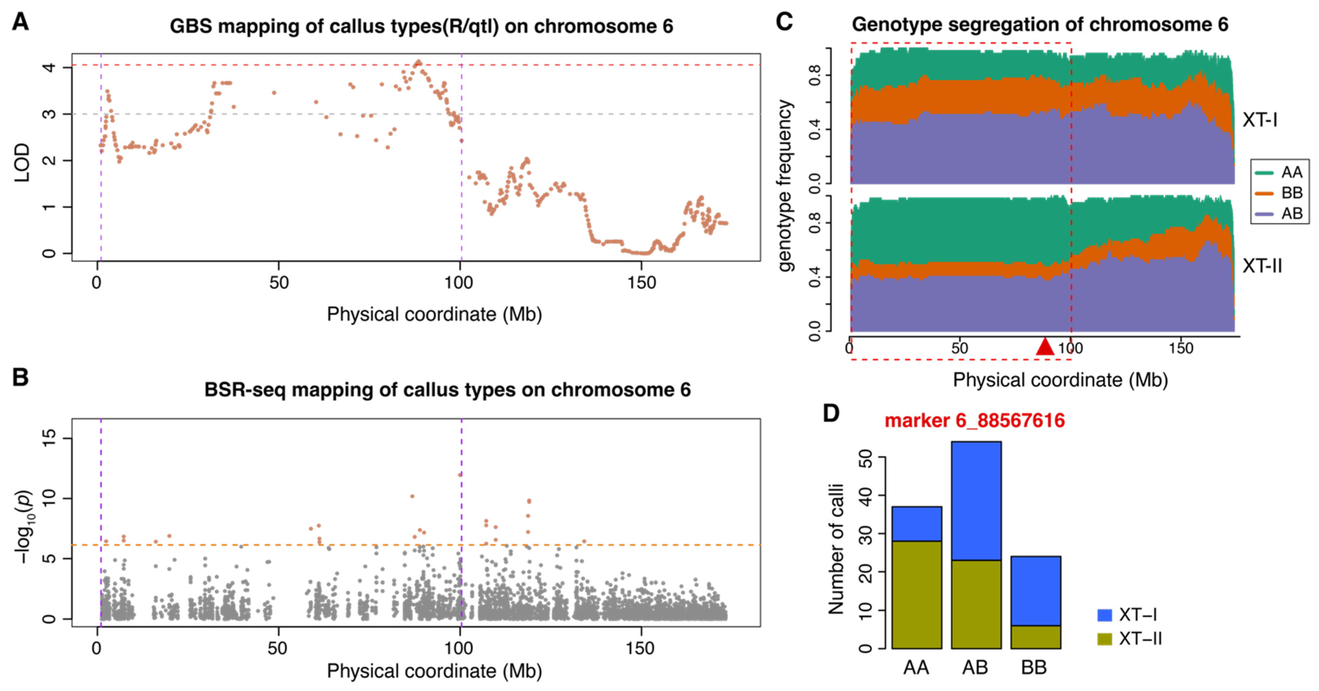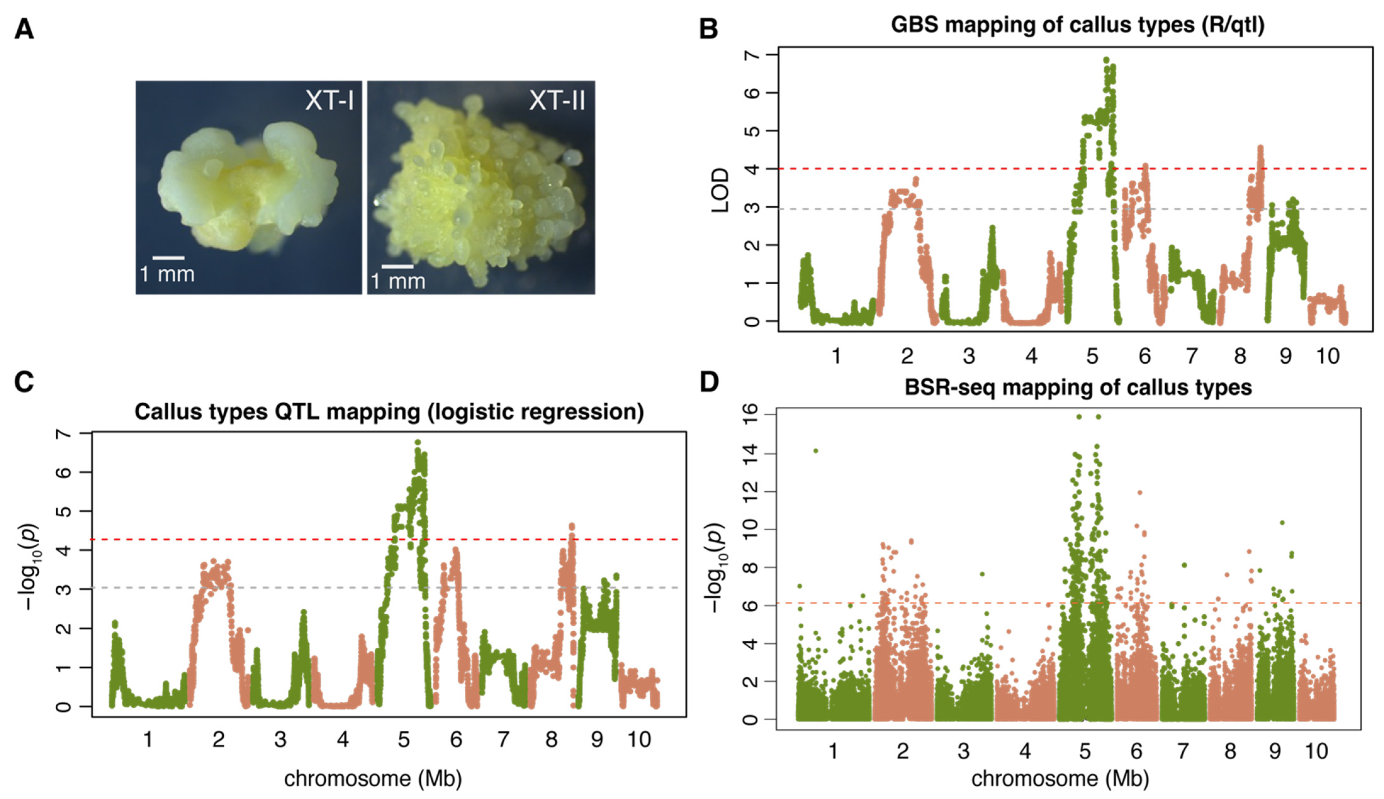 2.1. Genetic Mapping of the Callus Type