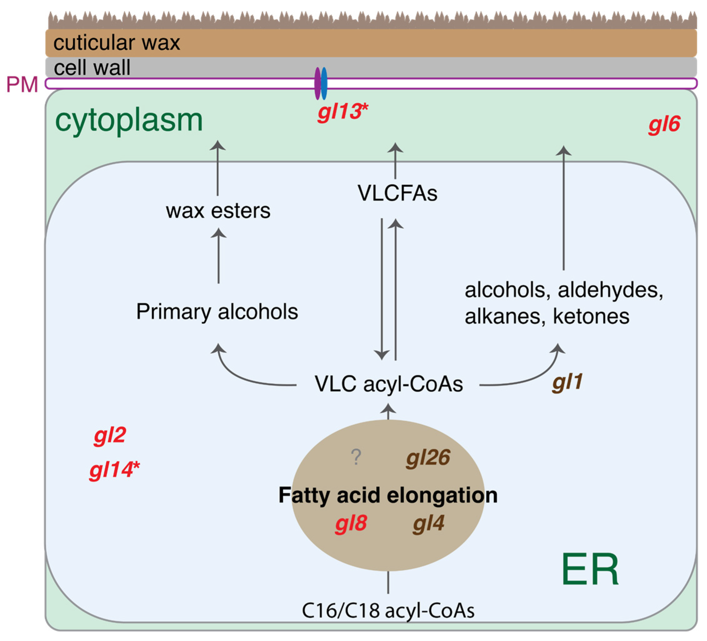 - Lewandowska, M.; Keyl, A.; Feussner, I. Wax Biosynthesis in Response to Danger: Its Regulation upon Abiotic and Biotic Stress. New Phytol. 2020, 227, 698–713. [Google Scholar] [CrossRef] [PubMed]