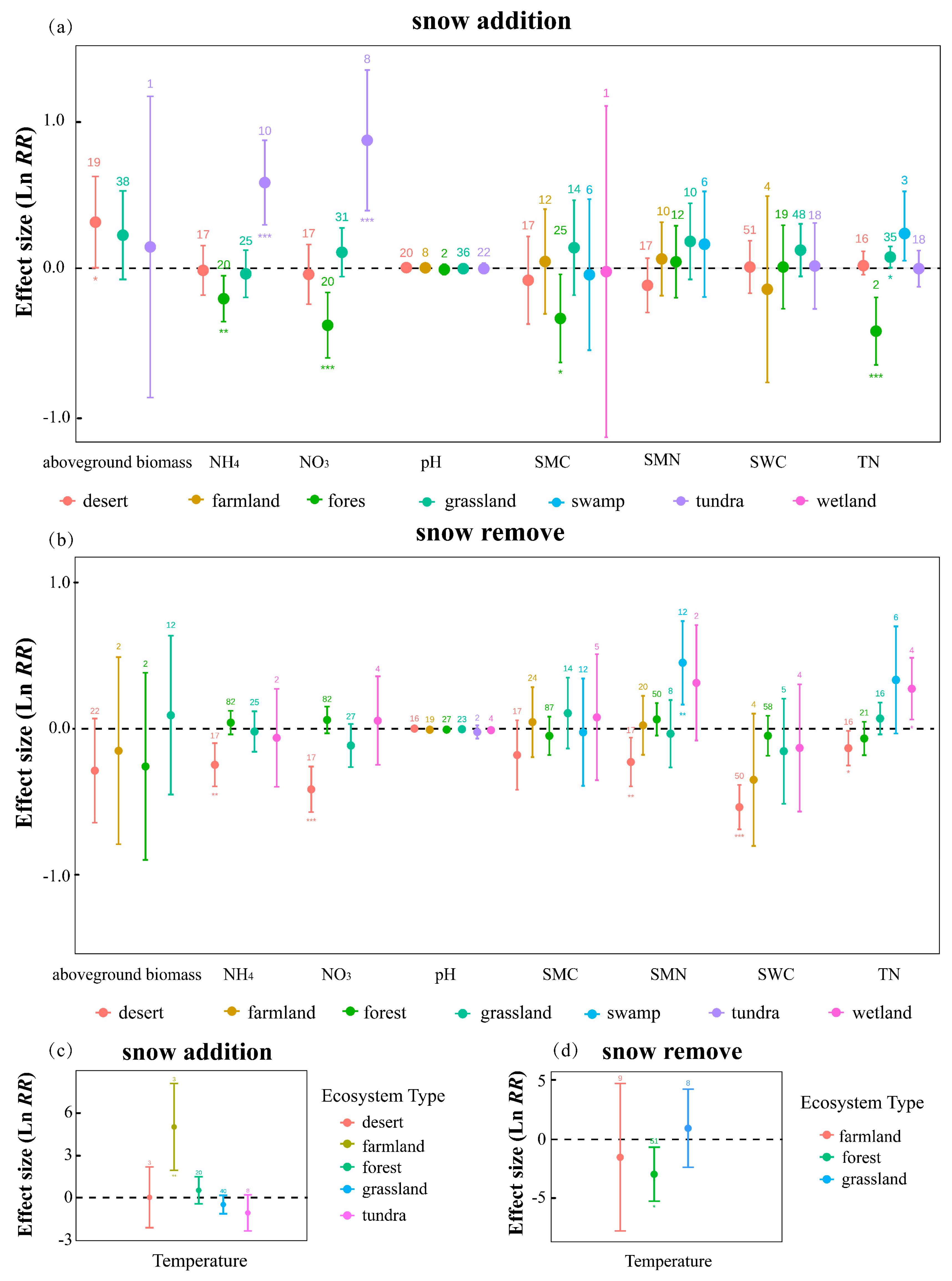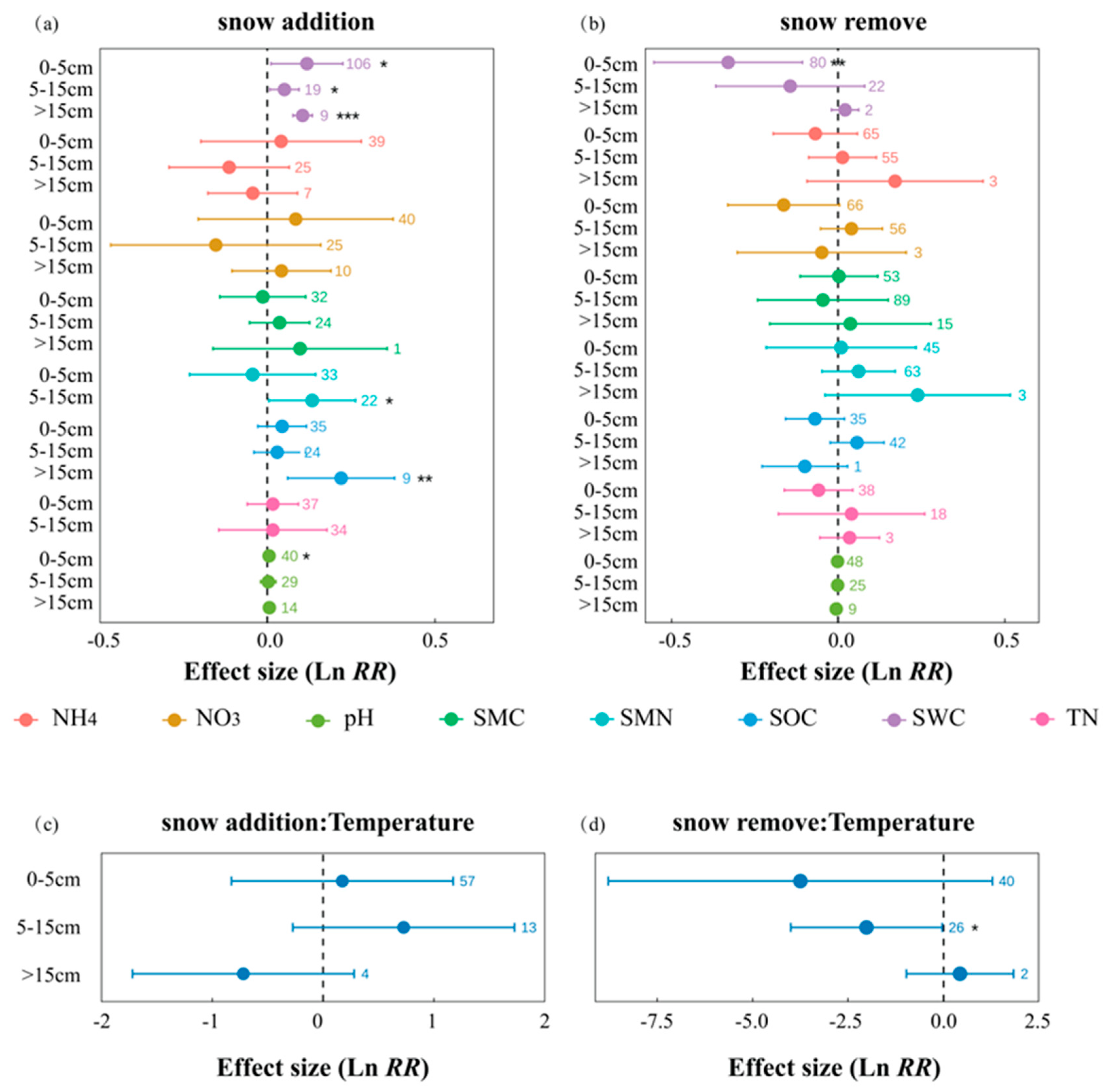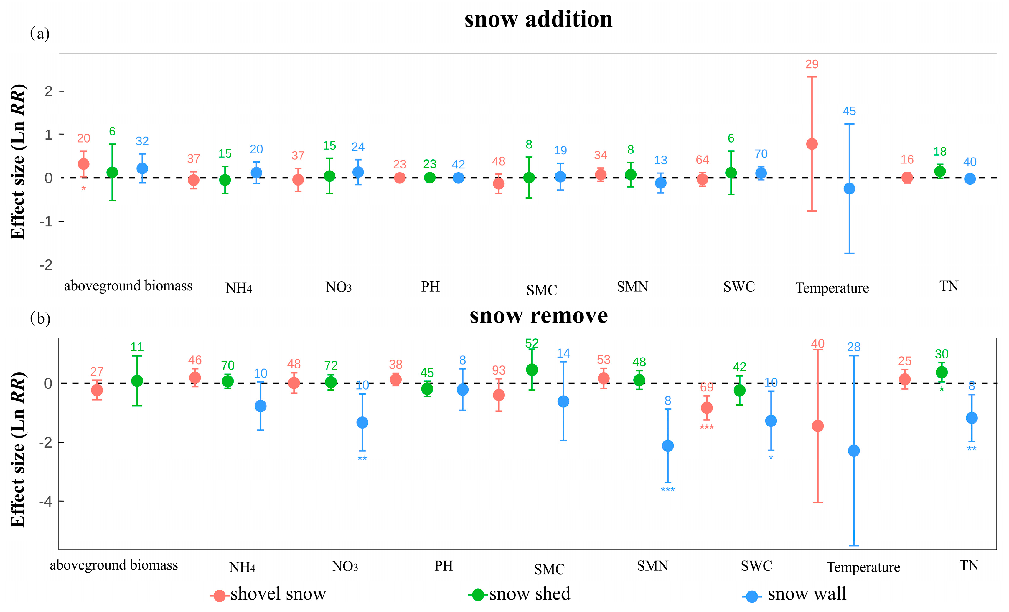 2.3. Responses Across Different Snow Manipulation Methods