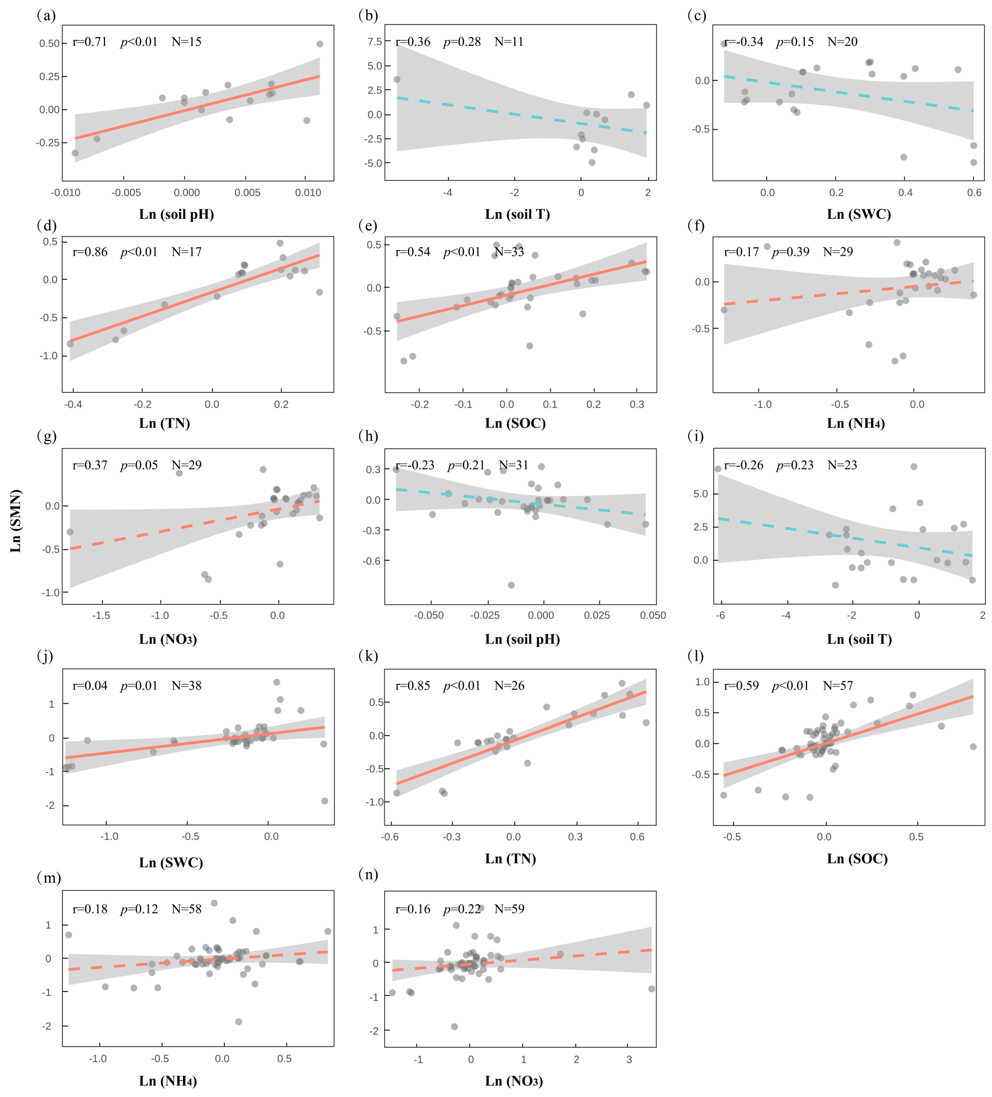 2.6. Microbe–Soil Correlations Under Snow Cover Change
