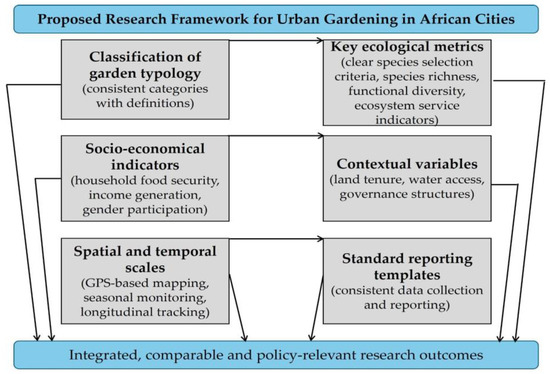 Urban planning and governance considerations were notably underrepresented in the reviewed literature. In recent years, gardening, particularly in the form of urban gardening, has gained recognition across Africa for its contribution to socio-economic development and urban greening [38,81,82]. However, its integration into spatial planning policies remains inconsistent and fragmented. In many African cities, urban gardening is conducted informally, often without legal recognition of land ownership, which undermines its long-term sustainability. For instance, while South Africa has shown some appreciation for urban gardening, it still lacks a comprehensive national framework to formally incorporate it into urban planning [83]. This often results in self-initiated gardening projects being undervalued and regarded as temporary land uses.