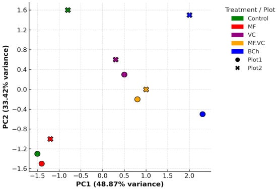 | 2 | MF.VC2 | Combined mineral fertiliser 0.05 t ha−1 + vermicompost 6 t ha−1 |