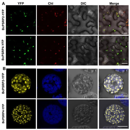 2.2. BcPSRP2/4 Were Localized to Chloroplasts
