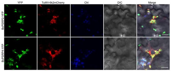 2.4. BcPSRP2/4 Partially Co-Localized with the TuMV Viral Replication Complex