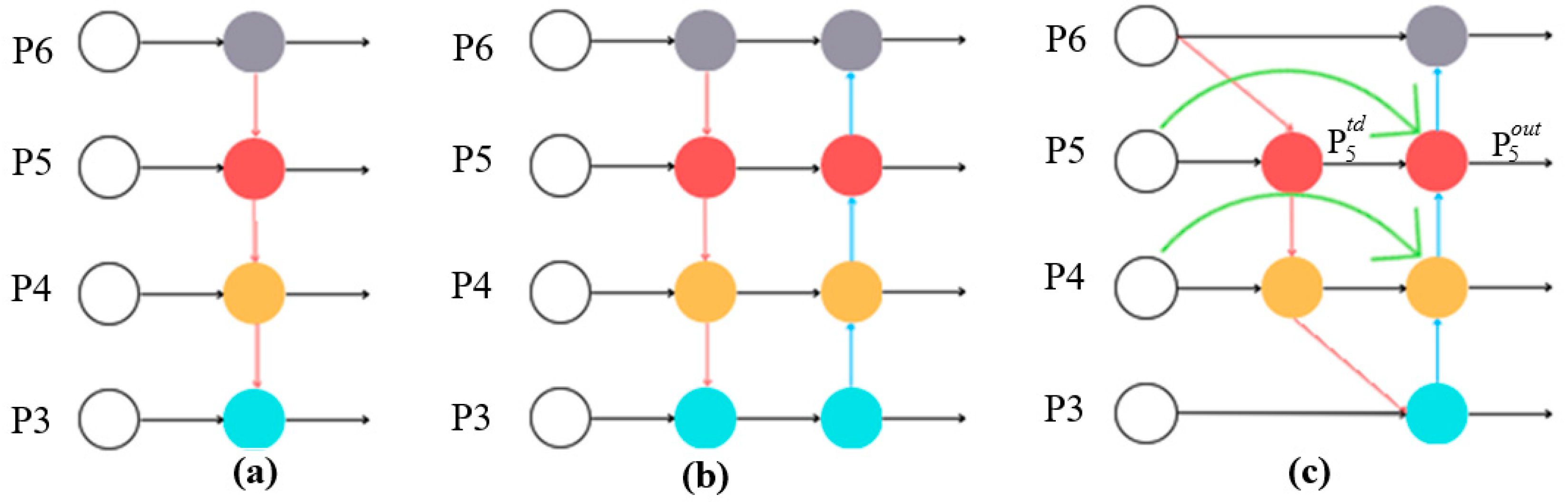 - Lin, T.Y.; Dollár, P.; Girshick, R.; He, K.; Hariharan, B.; Belongie, S. Feature pyramid networks for object detection. In Proceedings of the IEEE Conference on Computer Vision and Pattern Recognition, Honolulu, HI, USA, 21–26 July 2017; pp. 2117–2125. [Google Scholar]