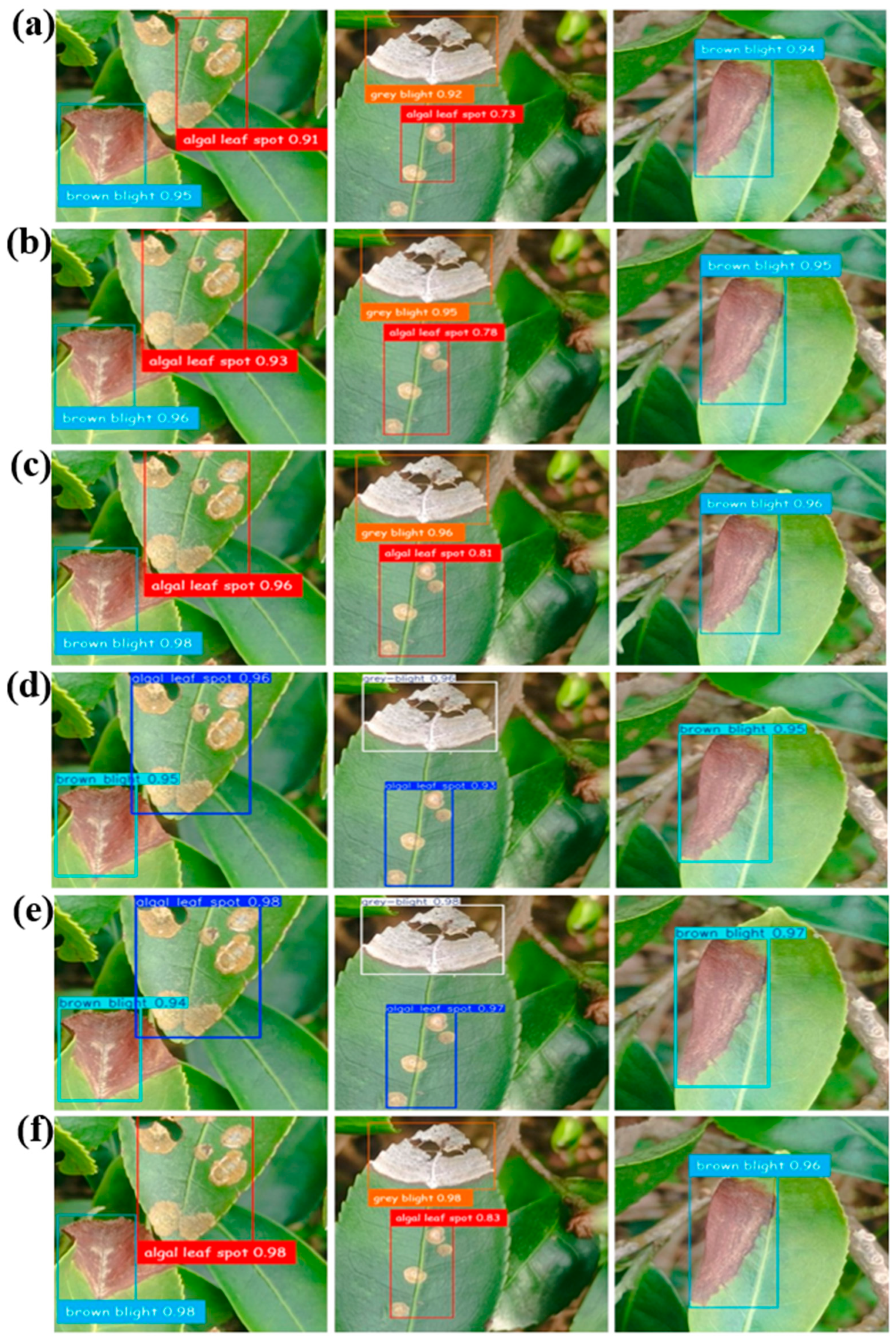 - Xue, Z.; Xu, R.; Bai, D.; Lin, H. YOLO-tea: A tea disease detection model improved by YOLOv5. Forests 2023, 14, 415. [Google Scholar] [CrossRef]