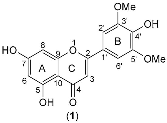 Figure 1). It is characterized by the presence of a free OH at C-4′ and two OMe groups at C-3′ and C-5′ of a 2-phenylchromen-4-one nucleus [