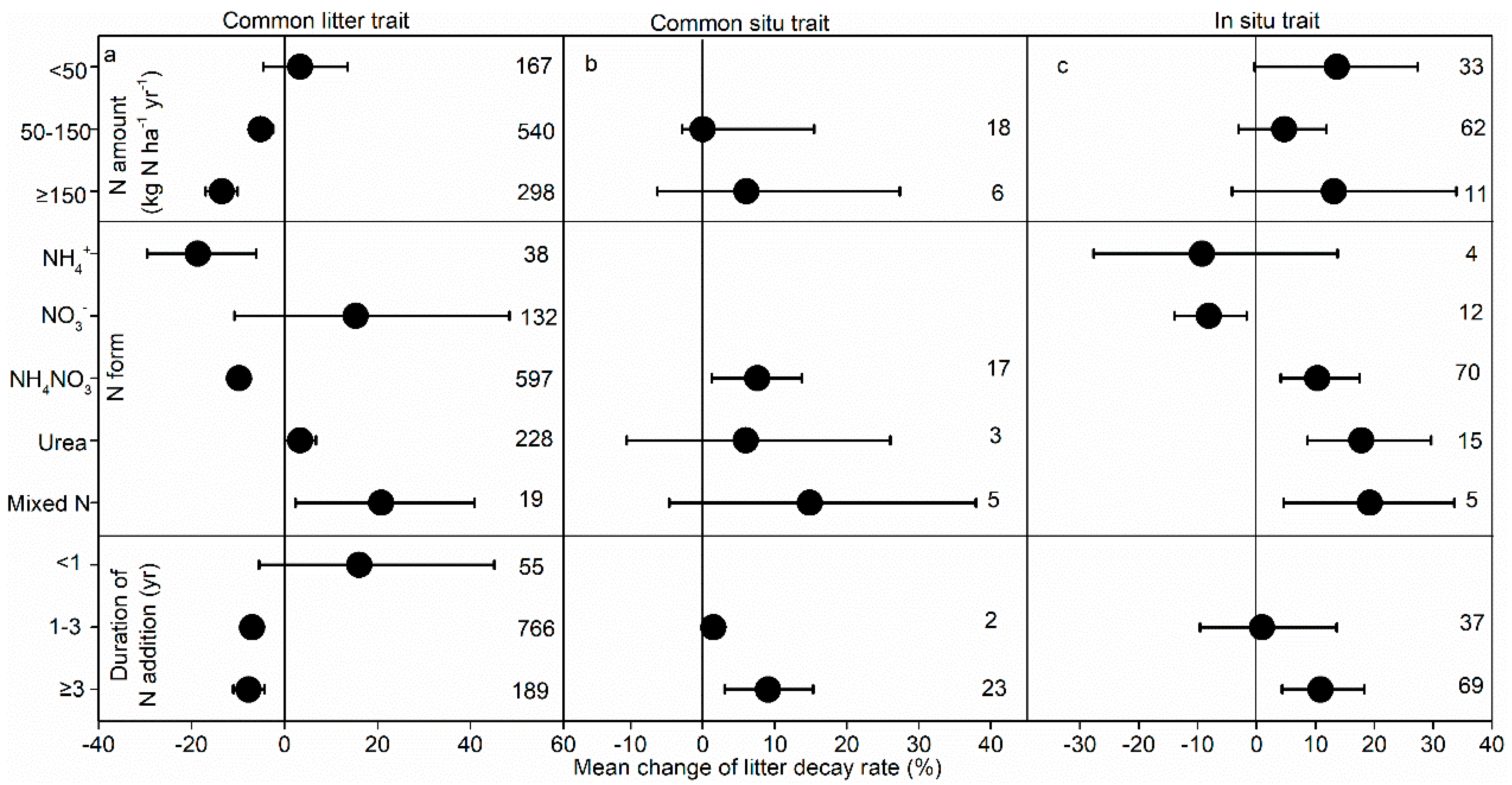 3.1. N Influencing Litter Decay Rate in Common Litter Trait
