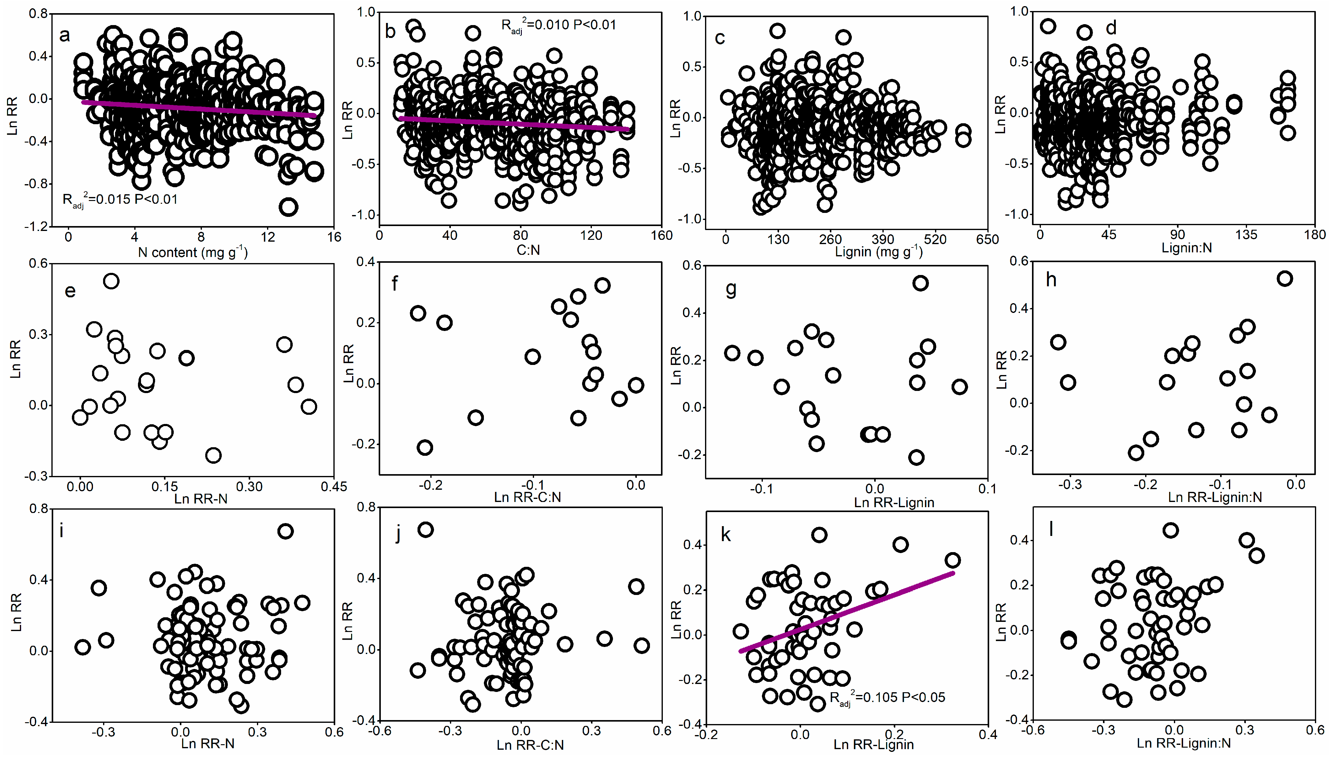 2.1. N Addition Overall Effect on Litter Decay Rate