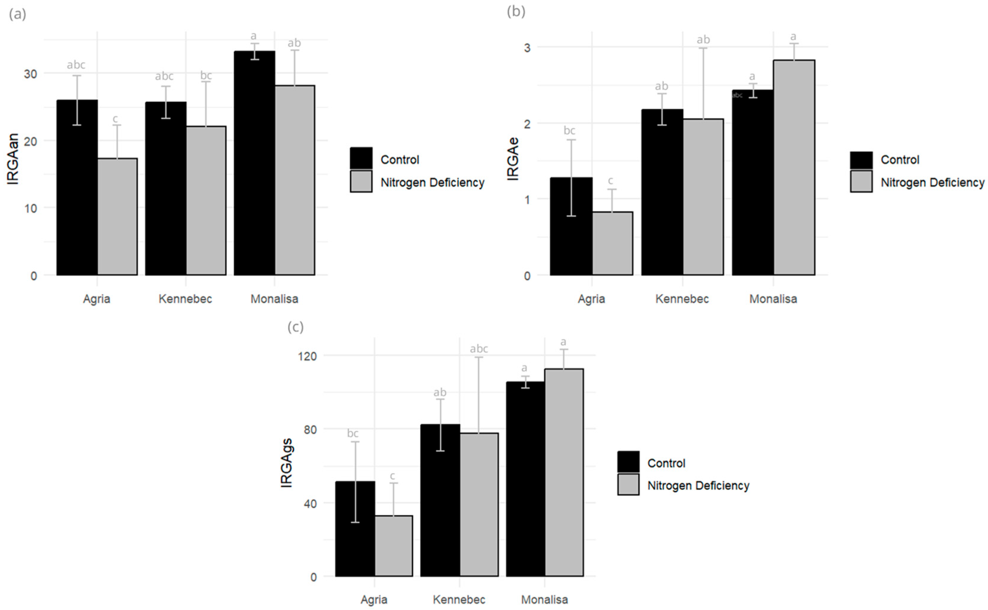 APA StyleBarandalla, L., Alvarez-Morezuelas, A., Iribar, C., Ritter, E., Riga, P., Lacuesta, M., & de Galarreta, J. I. R. (2025). Physiological Response to Nitrogen Deficit in Potato Under Greenhouse Conditions. Plants, 14(21), 3237. https://doi.org/10.3390/plants14213237