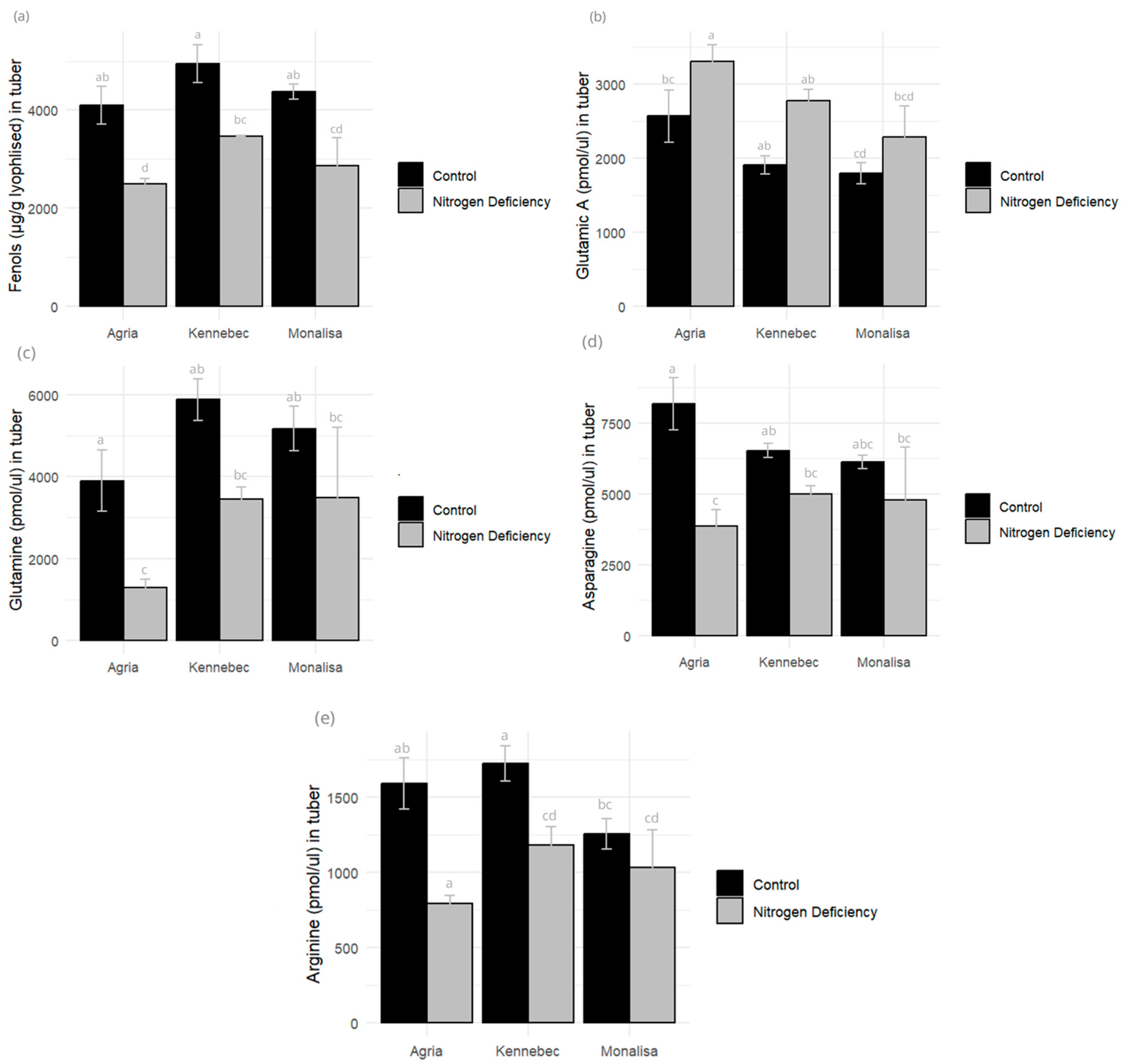 - Michalska, A.; Wojdyło, A.; Bogucka, B. The influence of nitrogen and potassium fertilisation on the content of polyphenolic compounds and antioxidant capacity of coloured potato. J. Food Compos. Anal. 2016, 47, 69–75. [Google Scholar] [CrossRef]