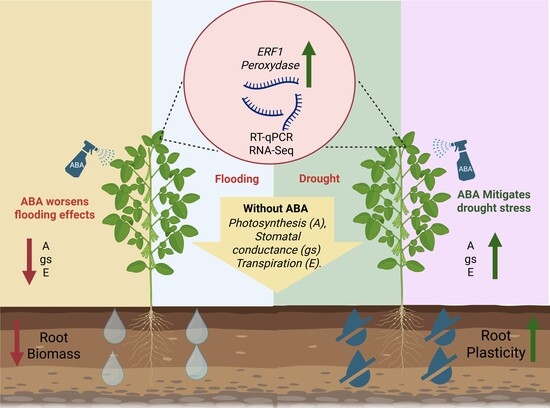 - Tamang, B.G.; Li, S.; Rajasundaram, D.; Lamichhane, S.; Fukao, T. Overlapping and stress-specific transcriptomic and hormonal responses to flooding and drought in soybean. Plant J. 2021, 107, 100–117. [Google Scholar] [CrossRef]