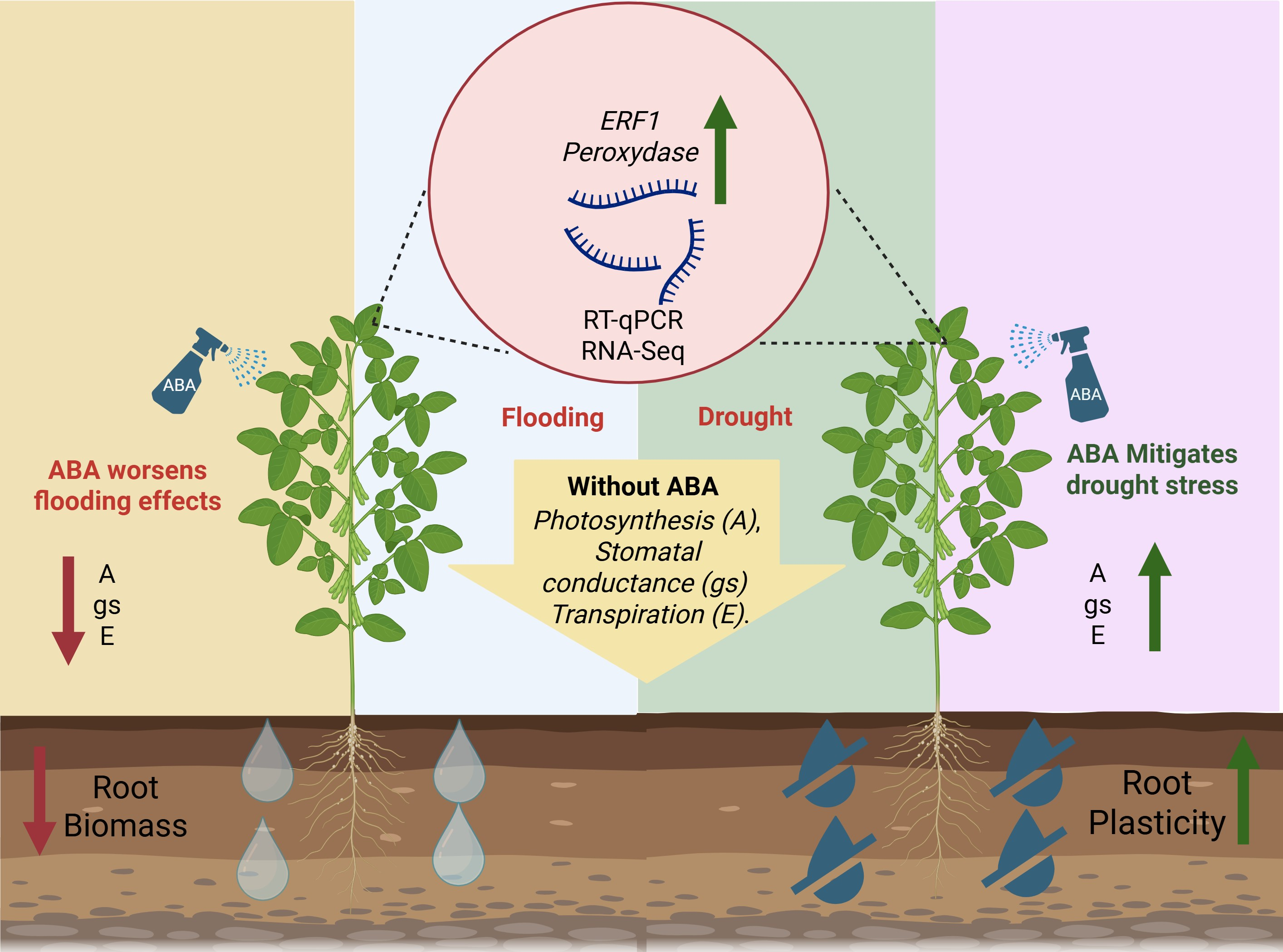 Andreata EC, Molinari MDC, Kafer JM, Marin SRR, Marin DR, Fuganti-Pagliarini R, Vanzela ALL, Rech EL, Nepomuceno AL, Mertz-Henning LM. Molecular Mechanisms and Crosstalk Signaling in Soybean’s Response to Water Deficit and Excess: Implications for Stress Resilience and Productivity. Plants. 2025; 14(21):3245. https://doi.org/10.3390/plants14213245