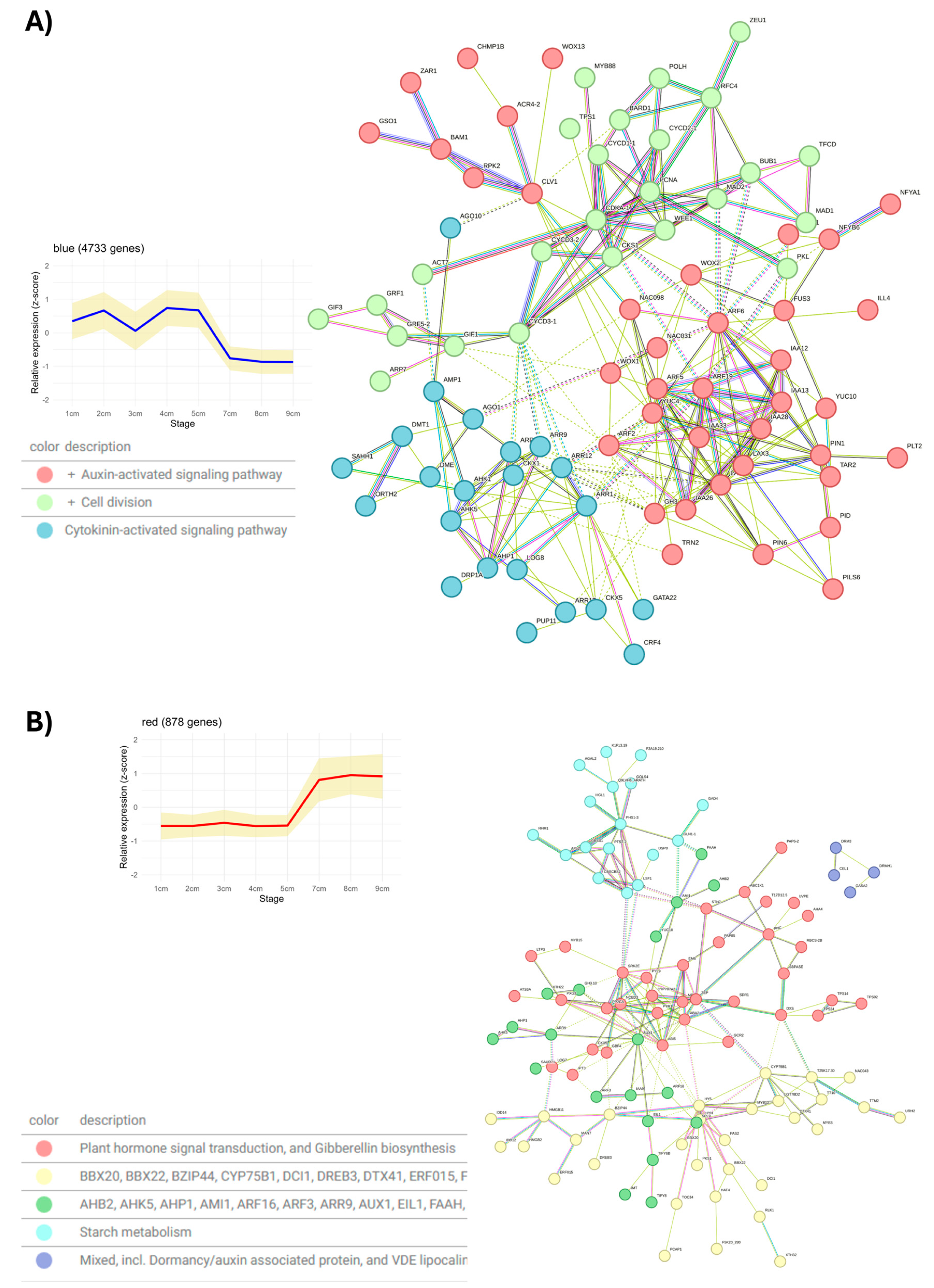 - Zhang, Y.; Peng, L.; Wu, Y.; Shen, Y.; Wu, X.; Wang, J. Analysis of global gene expression profiles to identify differentially expressed genes critical for embryo development in Brassica rapa. Plant Mol. Biol. 2014, 86, 425–442. [Google Scholar] [CrossRef]
