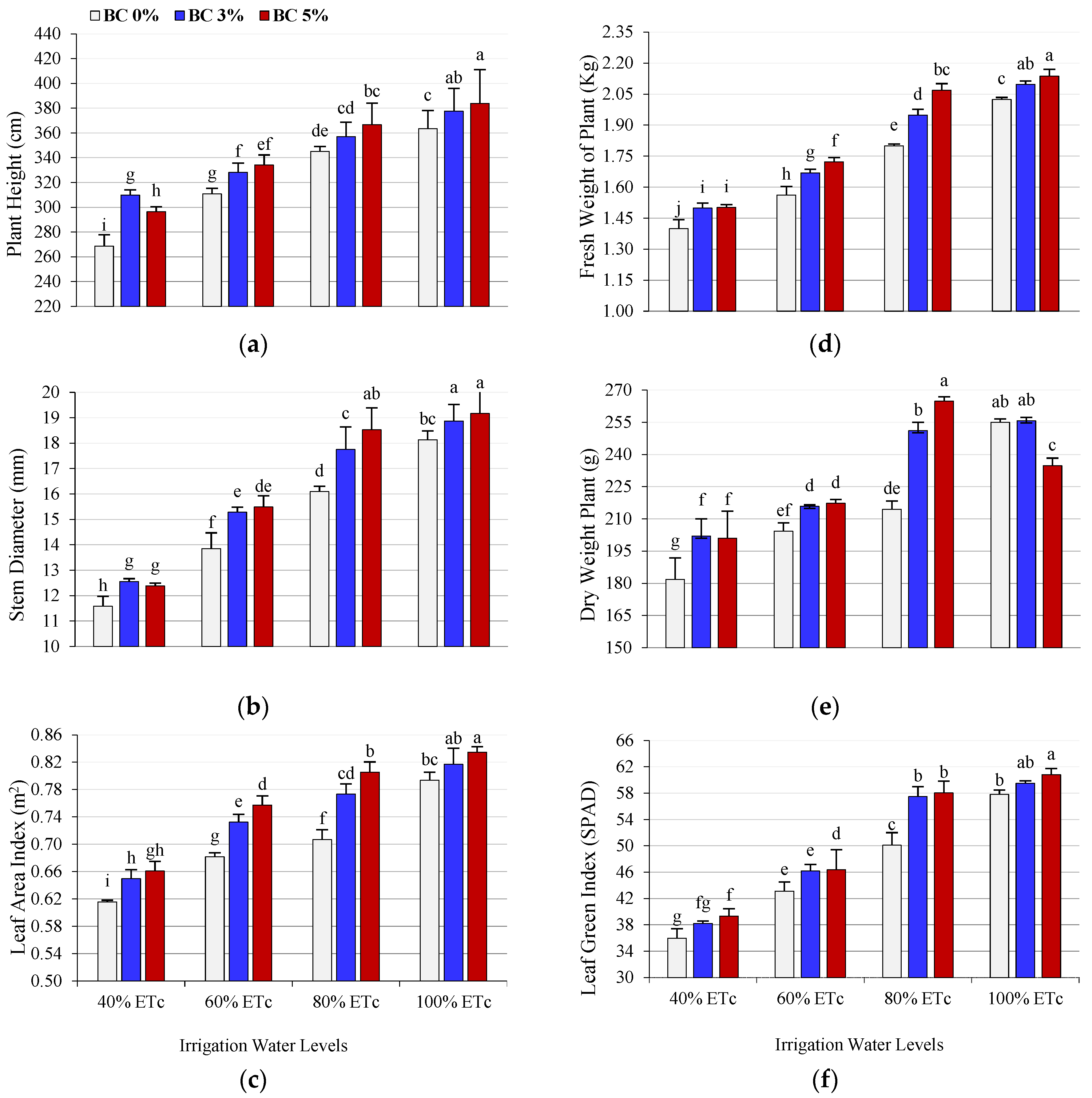 APA StyleObadi, A., Alharbi, A., Alomran, A., Alghamdi, A. G., Alqardaeai, T., Alkhasha, A., & Al-Swadi, H. A. (2025). Analysis of Biochar Addition in Improving Tomato Morpho-Physiological Traits and Water Productivity in Greenhouse. Plants, 14(21), 3293. https://doi.org/10.3390/plants14213293