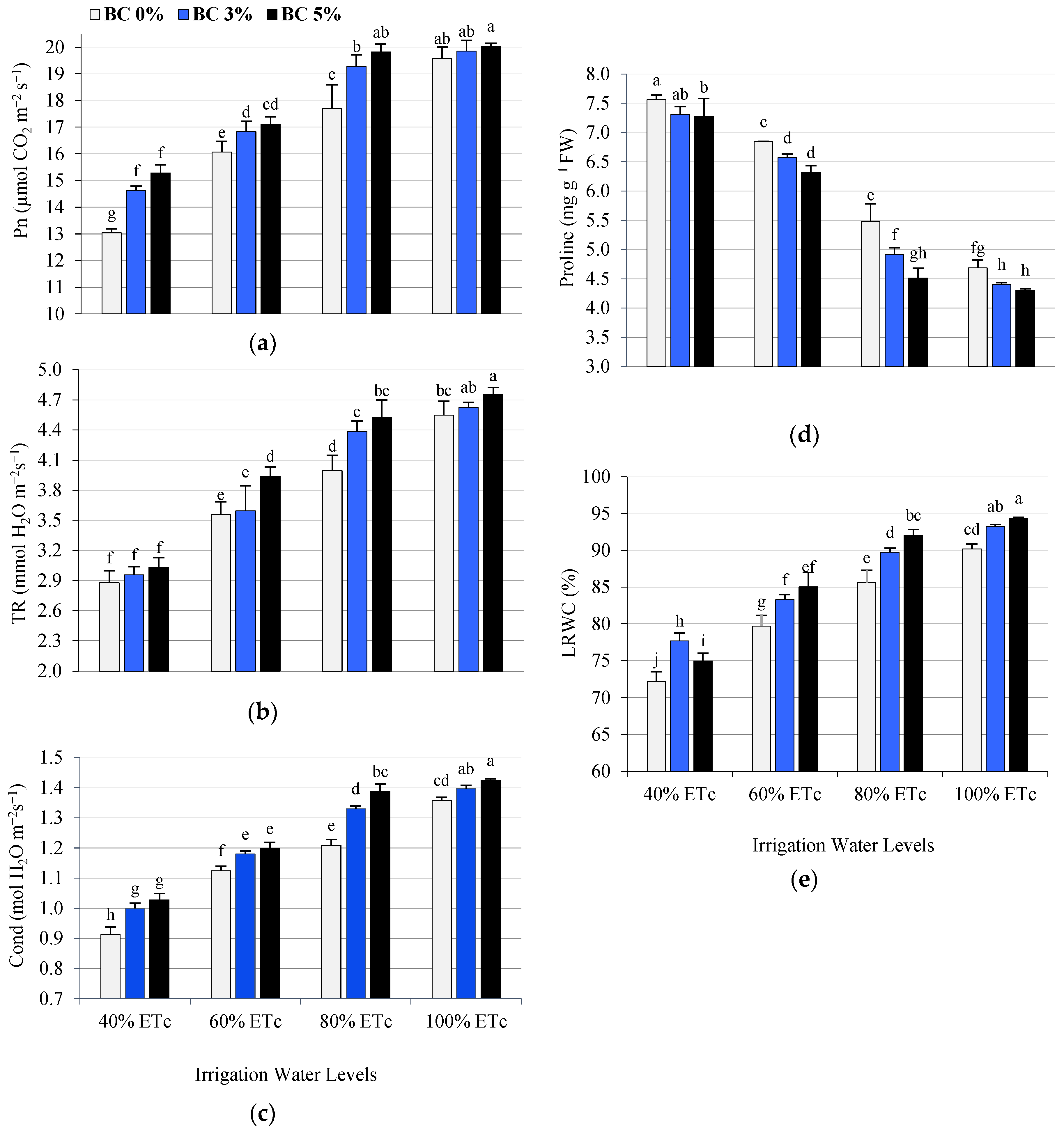 2.2. Effects of Biochar on Physiological Processes of Tomato Plants Grown Under Water Deficit Conditions