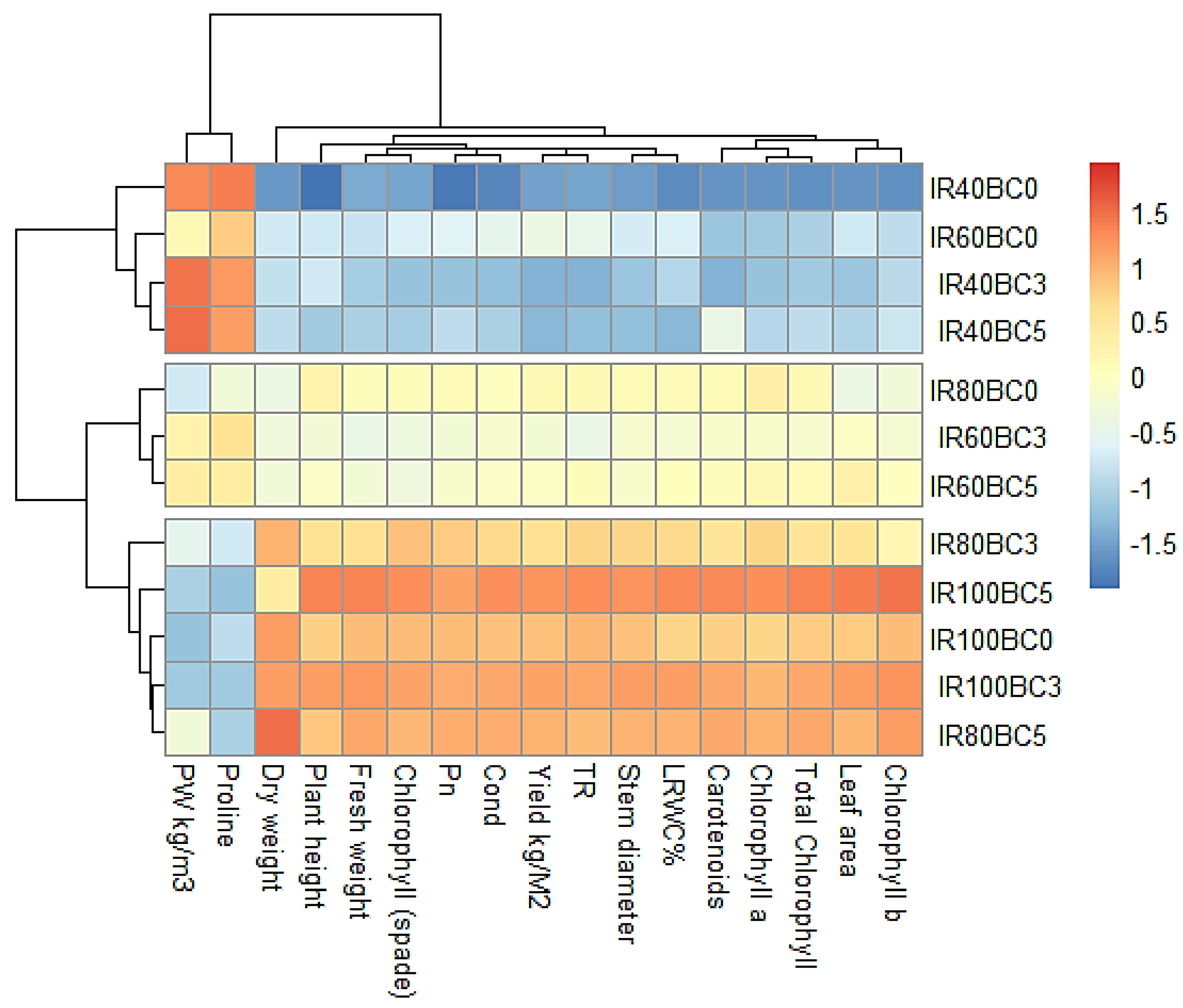 2.5. Selection of the Best Treatments (IRBC) Through Their Association with the Studied Traits