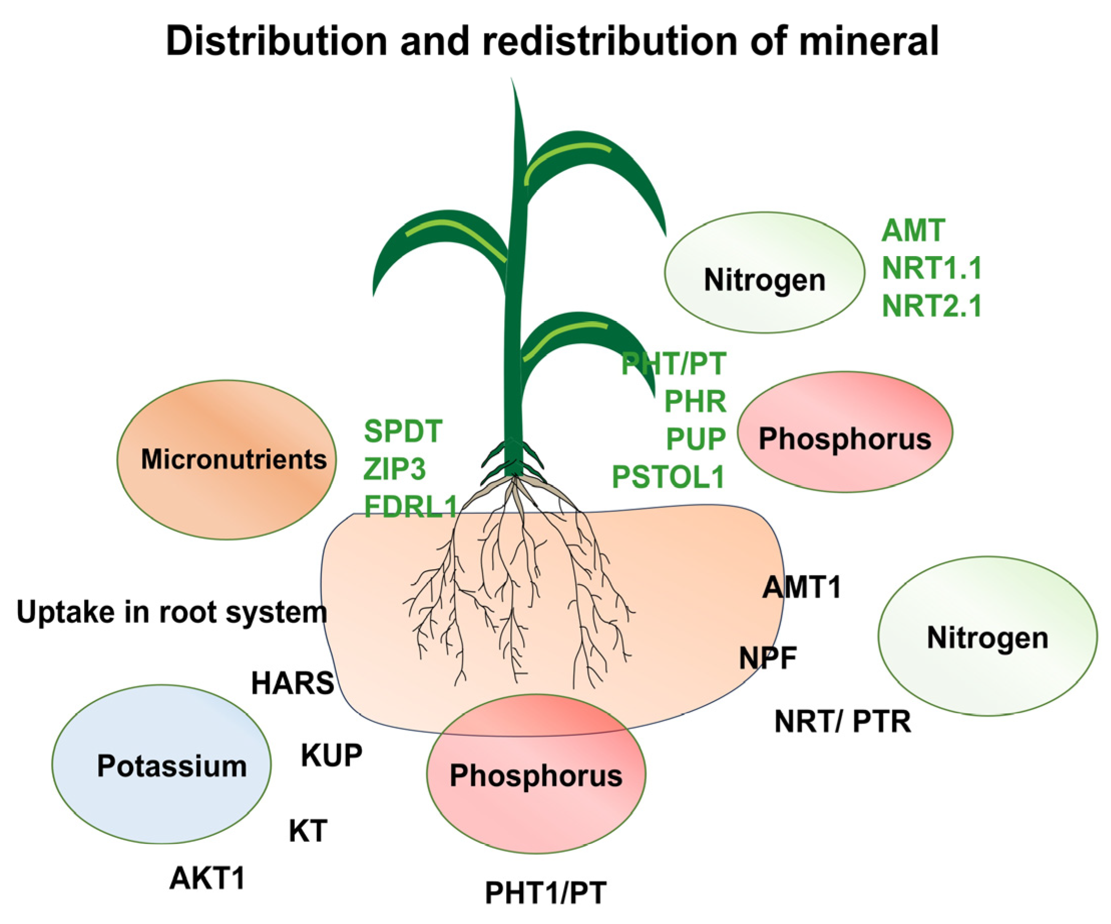- Aibara, I.; Miwa, K. Strategies for Optimization of Mineral Nutrient Transport in Plants: Multilevel Regulation of Nutrient-Dependent Dynamics of Root Architecture and Transporter Activity. Plant Cell Physiol. 2014, 55, 2027–2036. [Google Scholar] [CrossRef] [PubMed]