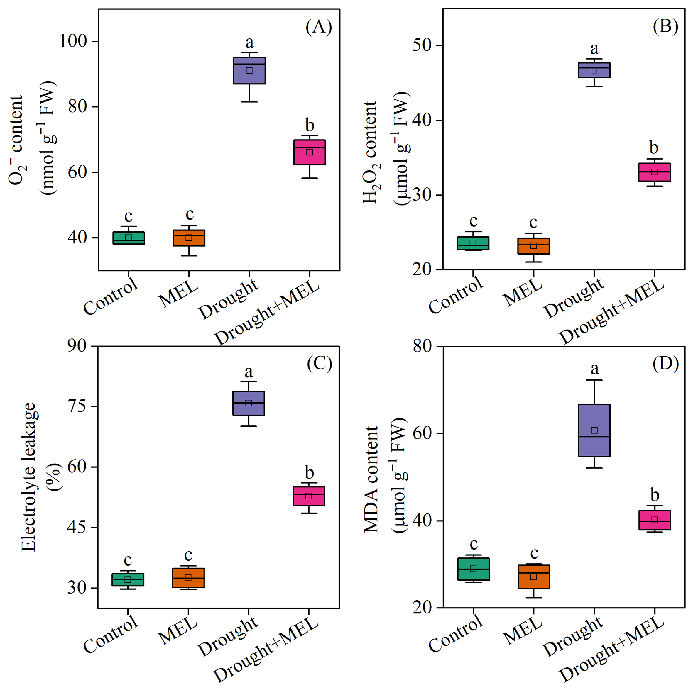 - Muhammad, I.; Yang, L.; Ahmad, S.; Farooq, S.; Khan, A.; Muhammad, N.; Ullah, S.; Adnan, M.; Ali, S.; Liang, Q.P.; et al. Melatonin-priming enhances maize seedling drought tolerance by regulating the antioxidant defense system. Plant Physiol. 2023, 191, 2301–2315. [Google Scholar] [CrossRef]