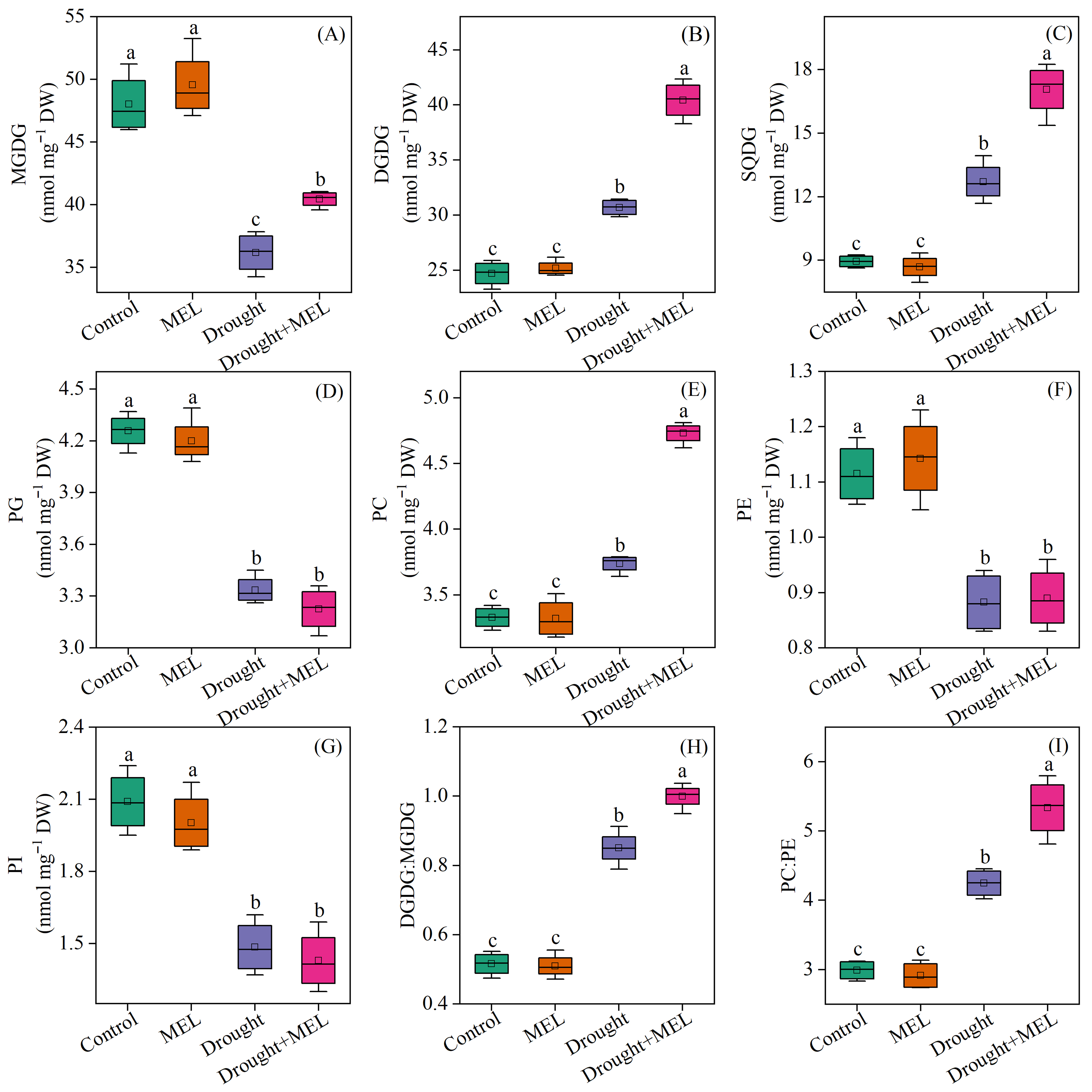 | MGDG | C | 4.17 ± 0.37 a | 0.36 ± 0.03 a | 1.94 ± 0.14 a | 1.96 ± 0.17 a | 1.23 ± 0.06 a | 38.31 ± 1.69 a |